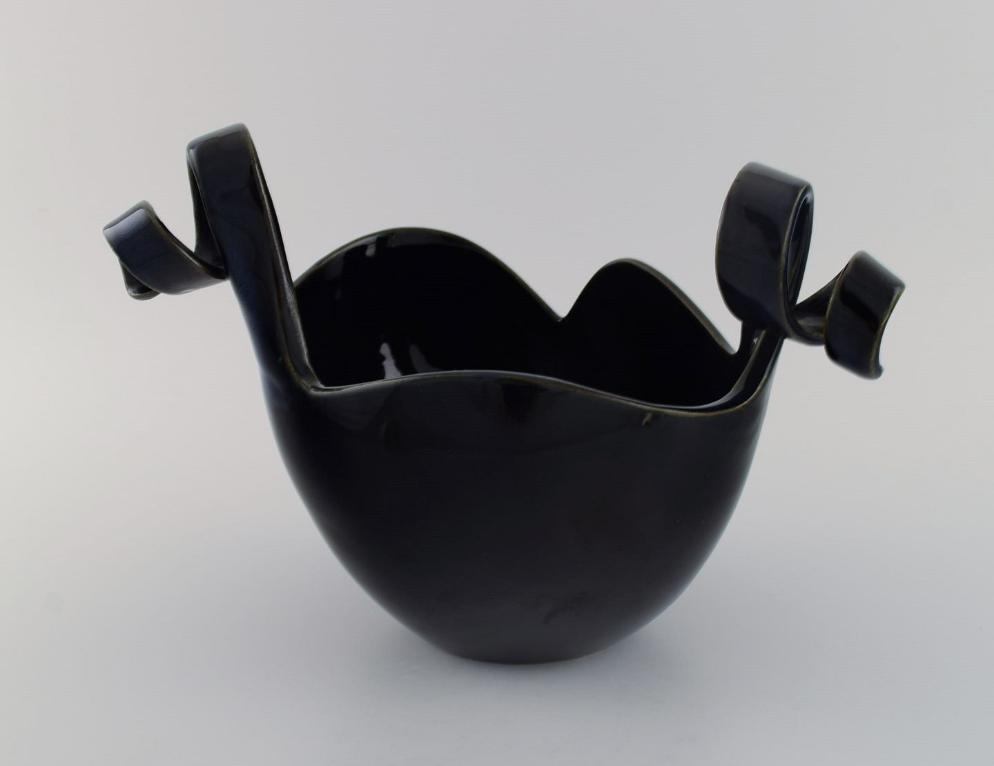 Claydies for Kähler. Primadonna skål i sort glaseret keramik modeleret med krøllede hanke. 21. århundrede. Måler: 28 x 20 cm. I flot stand. Stemplet.