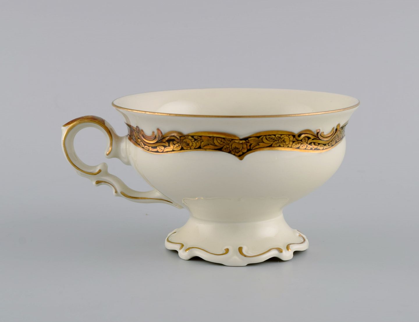 KPM, Berlin. Royal Ivory teservice i cremefarvet porcelæn med gulddekoration til seks personer. 1920'erne.