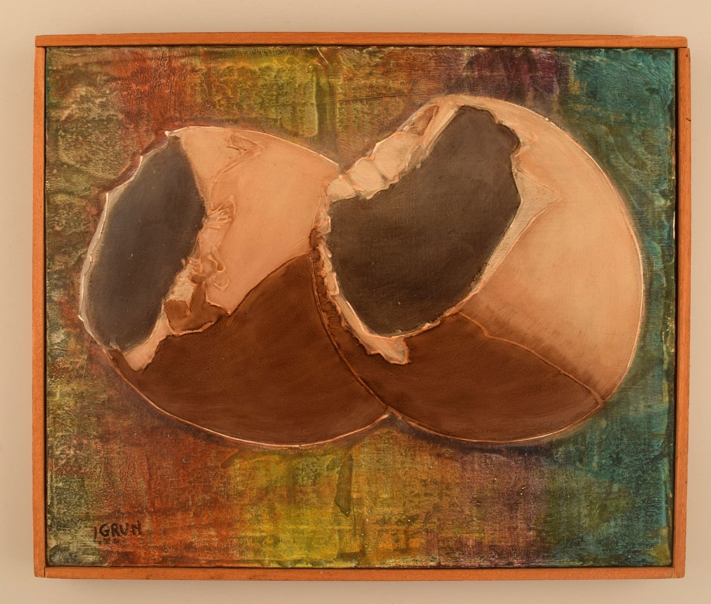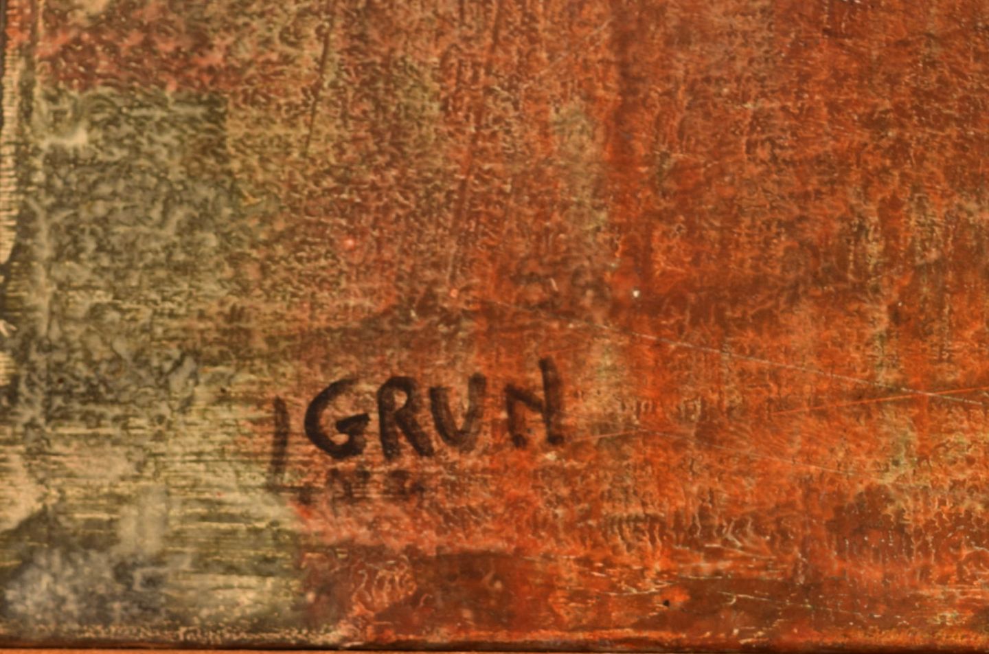 Luc Grun (f. 1936), Frankrig. Olie på lærred. Abstrakt komposition. 1970'erne. Lærredet måler: 33 x 27,5 cm. Rammen måler: 7 mm. I flot stand. Signeret.