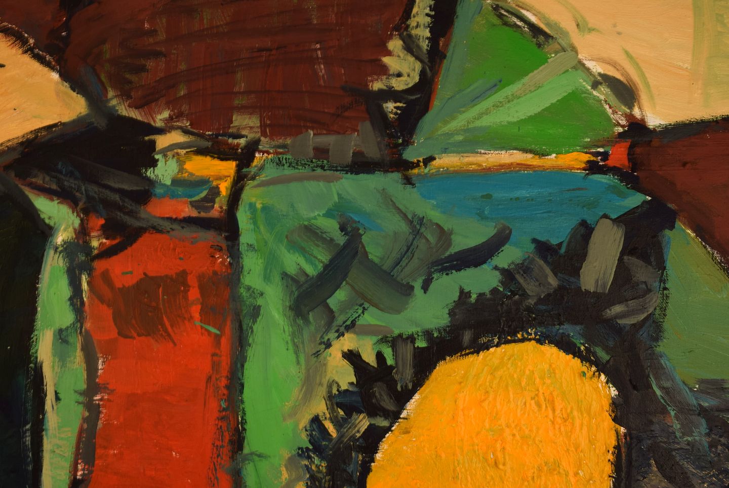 Unknown Scandinavian artist. Oil on canvas. Abstract composition. 1960s. The canvas measures: 80 x 60 cm. The frame measures: 6 cm. In excellent condition. Signed in monogram.