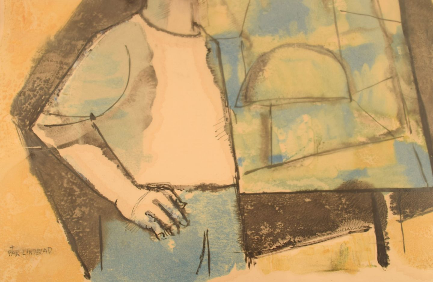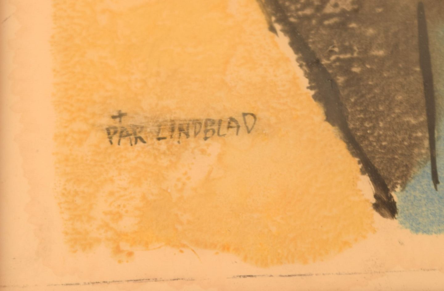 Pär Lindblad (1907-1981), svensk kunstner. Akvarel på papir. Midt 1900-tallet. Papiret måler: 49 x 46 cm. Rammen måler: 2 cm. I flot stand. Signeret.