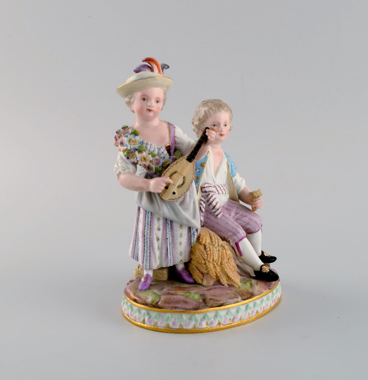 Antik Meissen Porcelænsfigur. Ungt par til høstfest. Sent 1800-tallet.