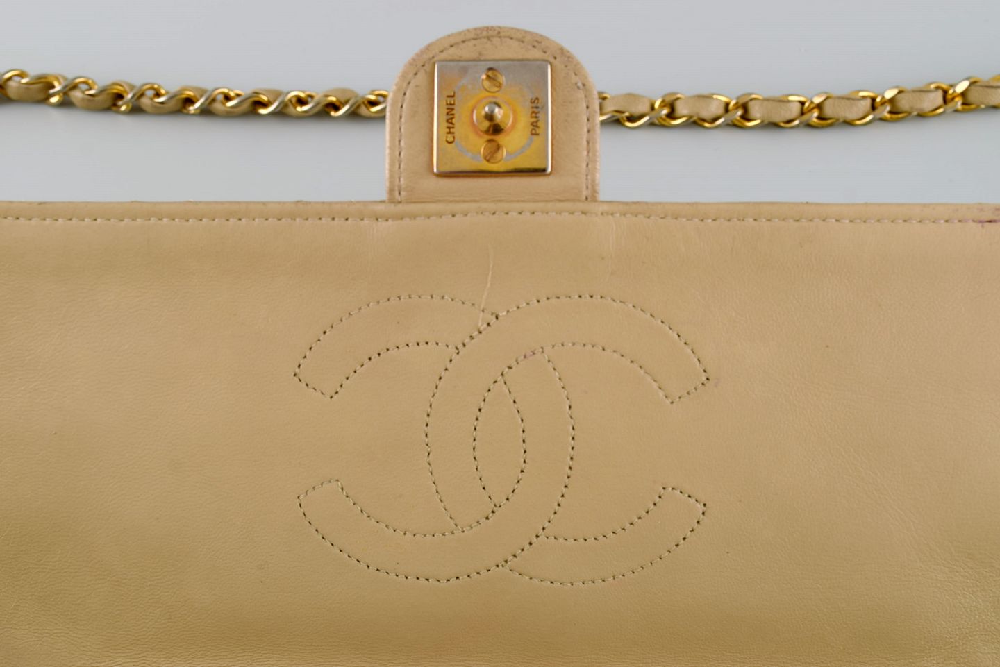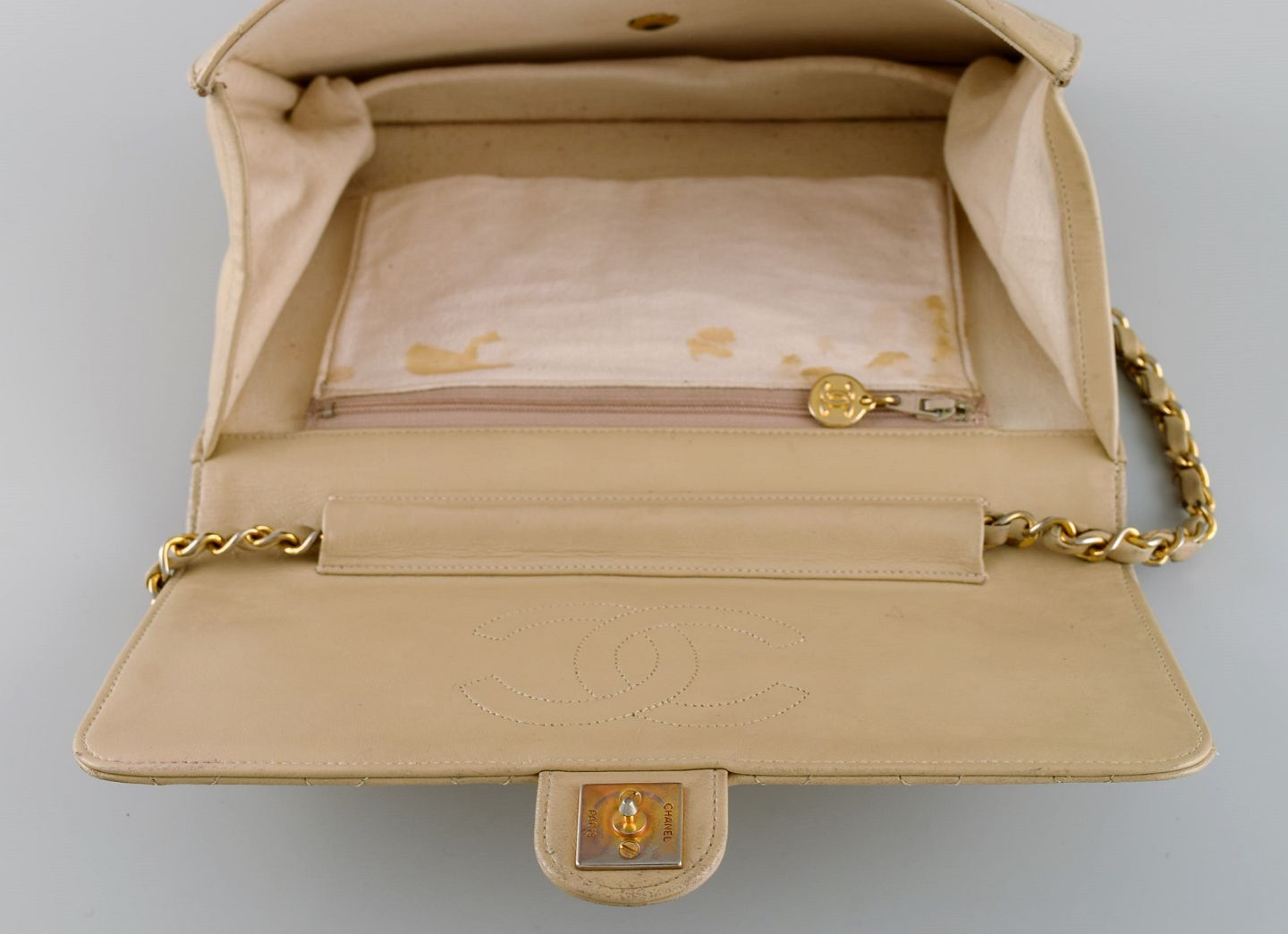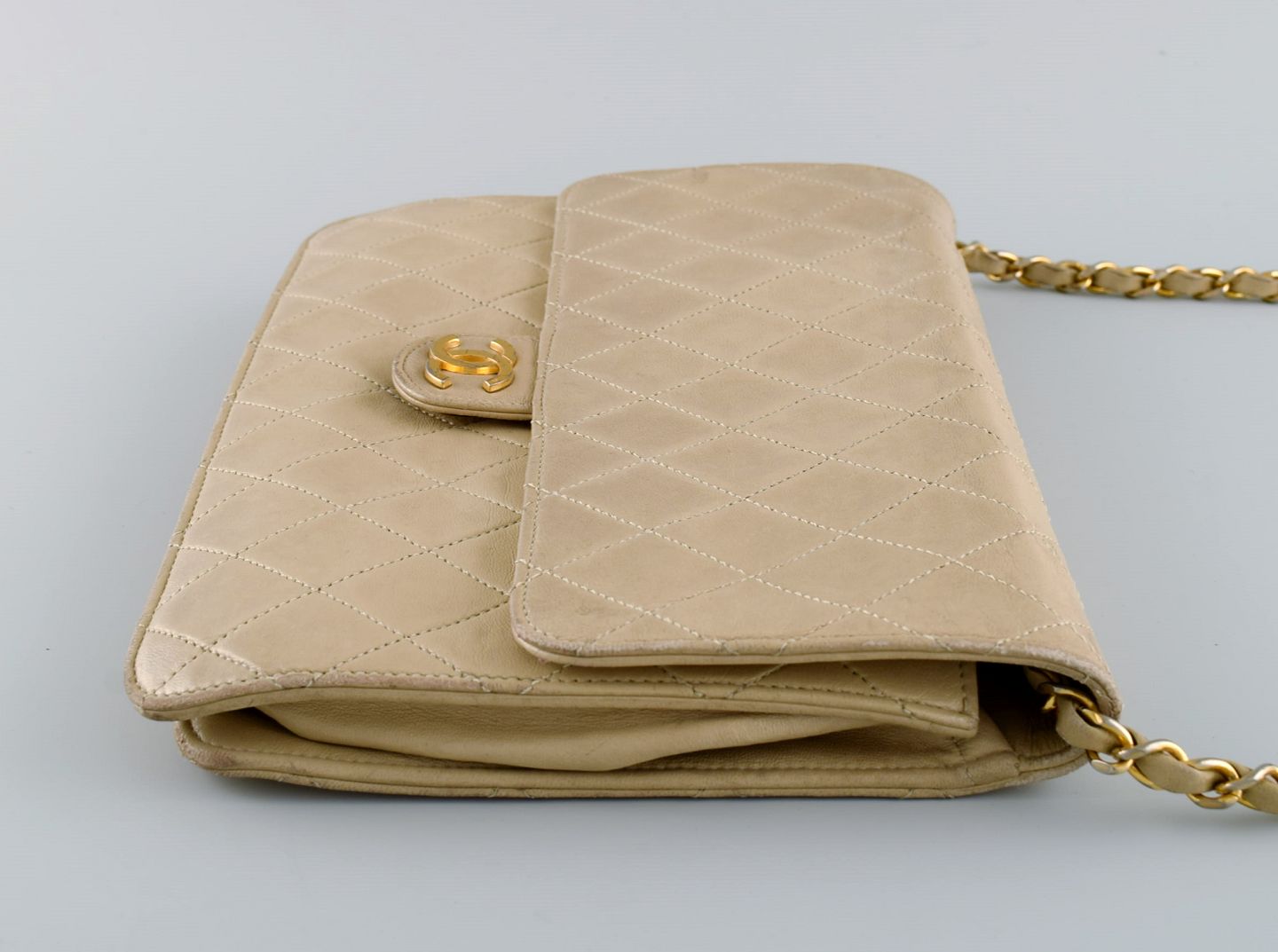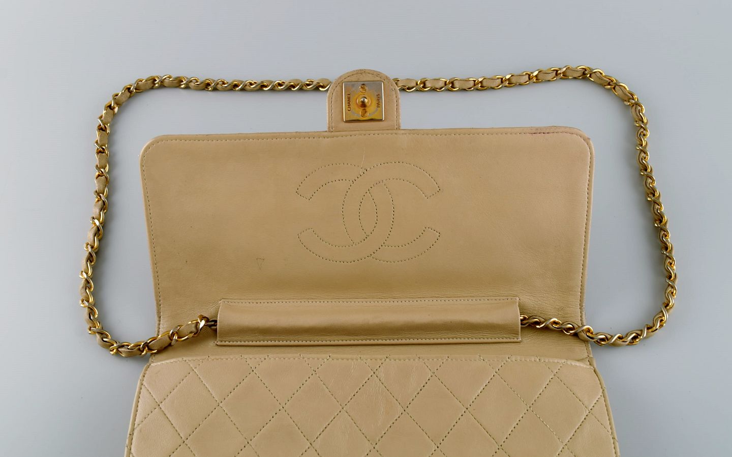 Vintage Chanel skuldertaske i kalveskind. Syninger i ternet mønster. Fransk design, 1970'erne. Måler: 25 x 18 cm. I flot stand. Mindre brugspræg. Stemplet.