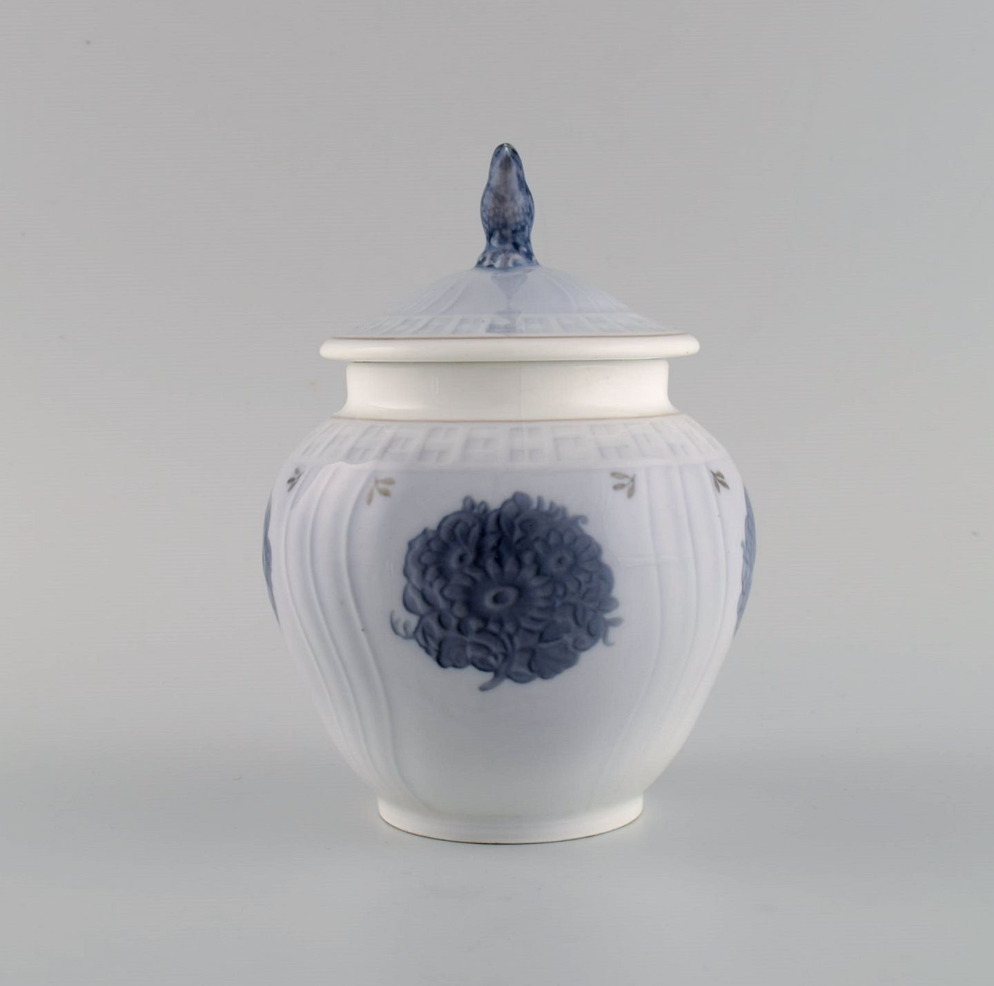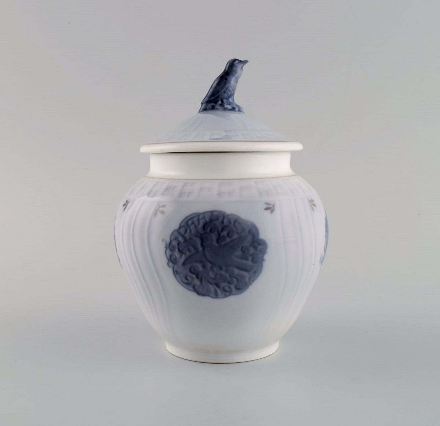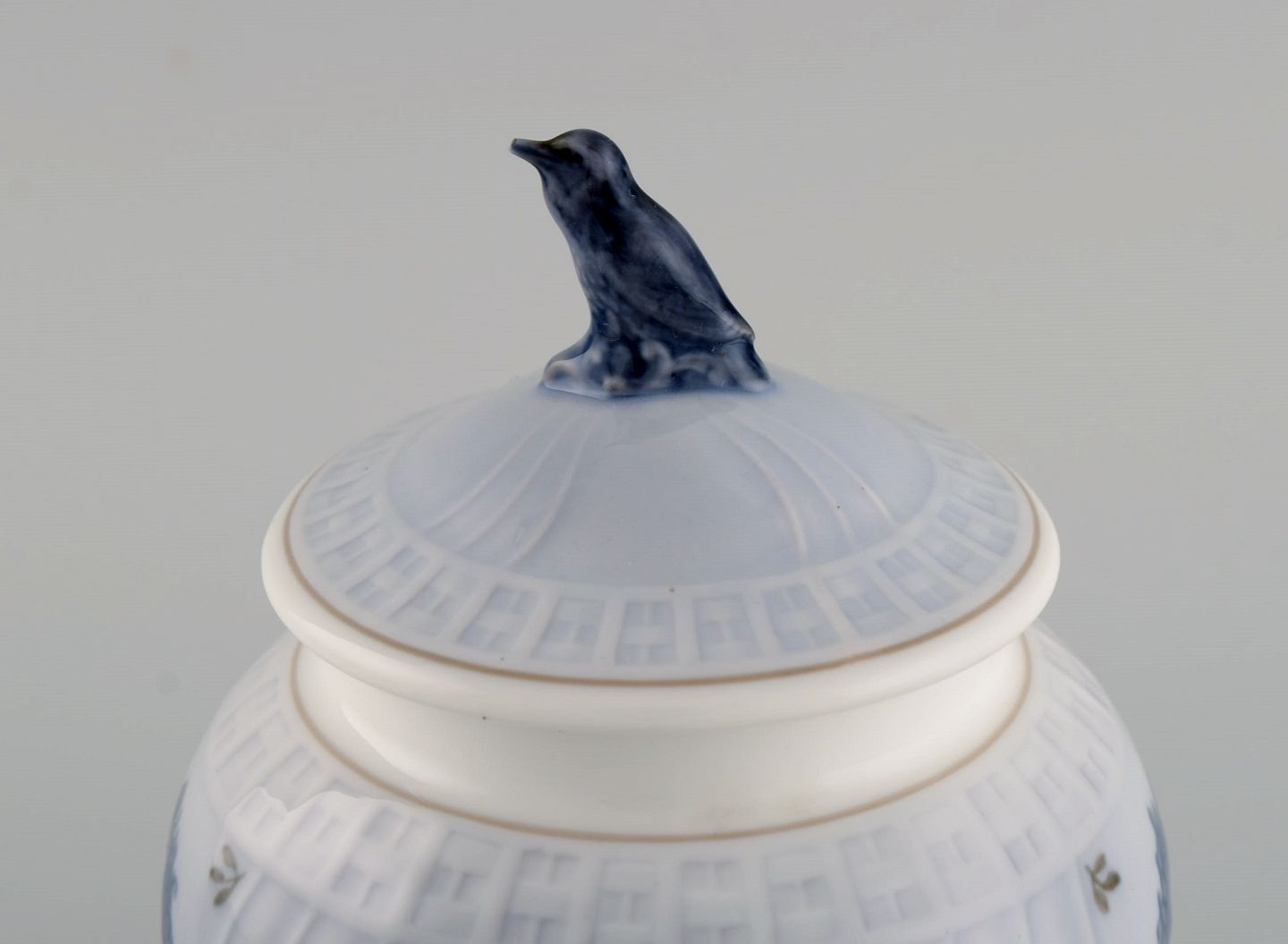 Royal Copenhagen påske lågkrukke i håndmalet porcelæn. Lågknop modelleret som fugl. Dateret 1919. Måler: 15 x 11,5 cm. I flot stand. Mikro skår på fuglens næb. Stemplet.