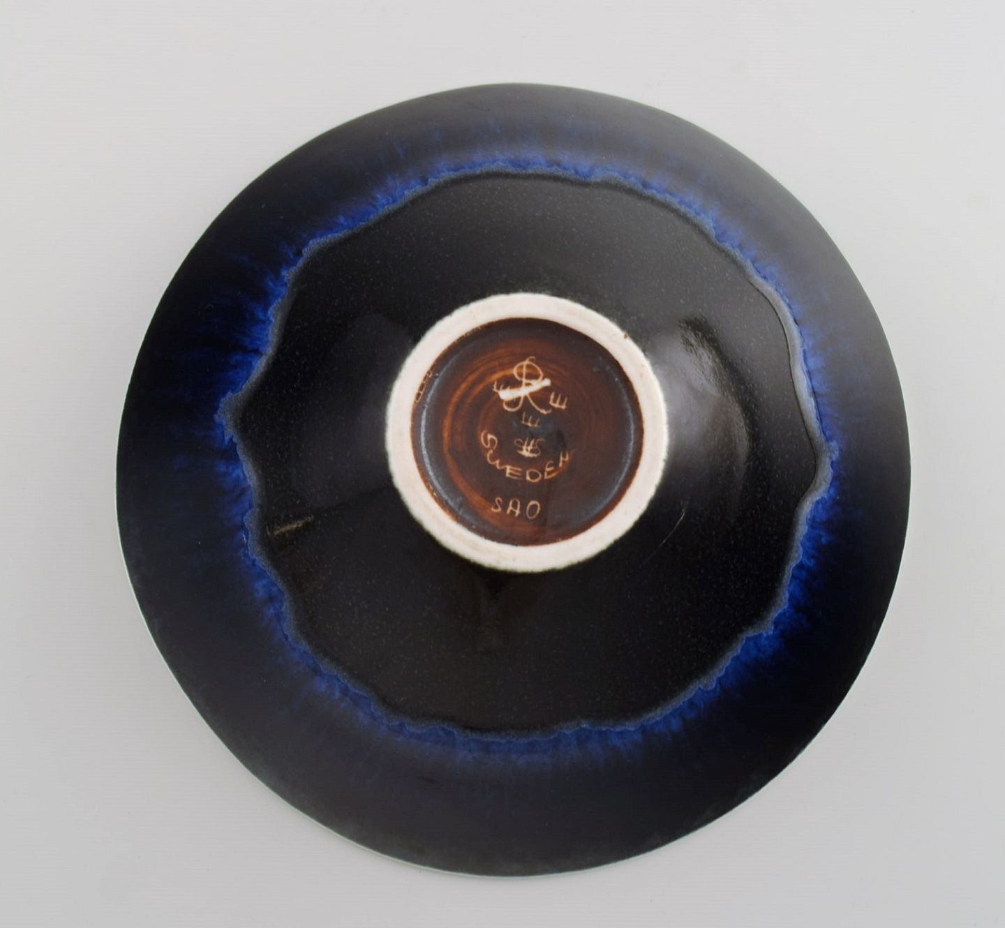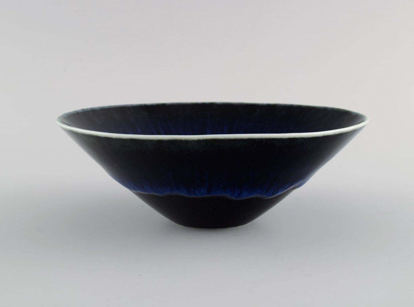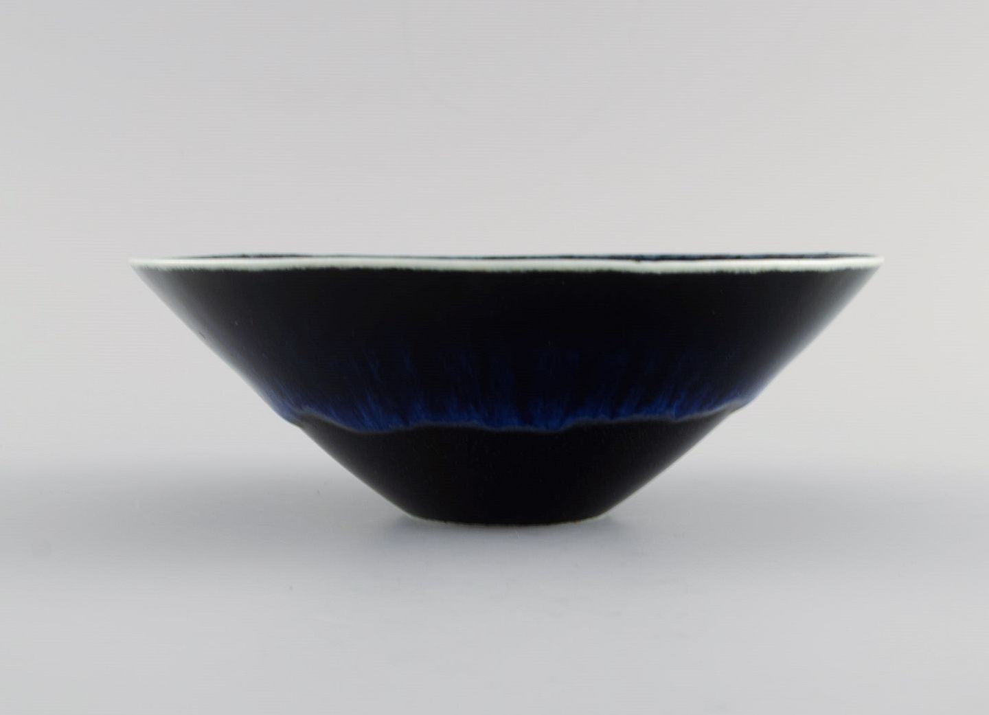 Carl Harry Stålhane (1920-1990) for Rörstrand. Skål i glaseret keramik. Smuk glasur i dybe blå nuancer. Midt 1900-tallet. Måler: 17,7 x 6 cm. I flot stand. Stemplet. 2. Sortering.