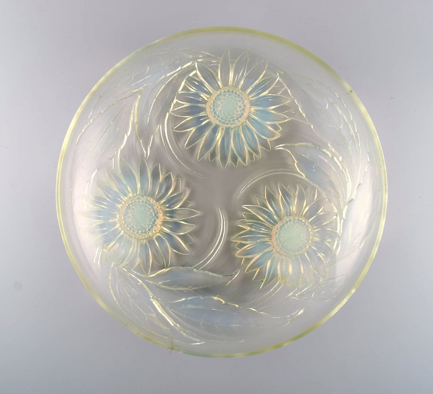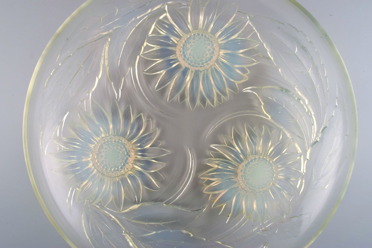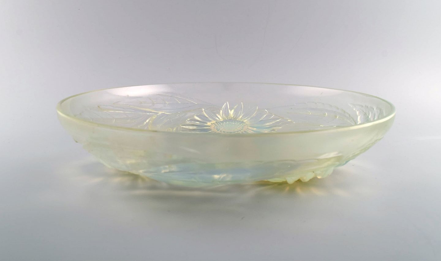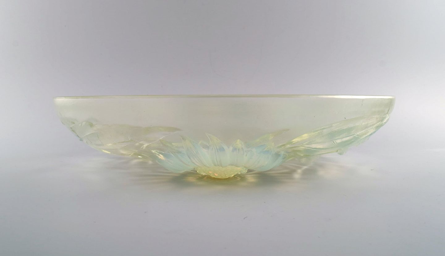 Verlys, Frankrig. Stor art deco skål i mundblæst kunstglas med blomster i relief. 1940'erne. Måler: 35 x 6,8 cm. I flot stand. Stemplet.