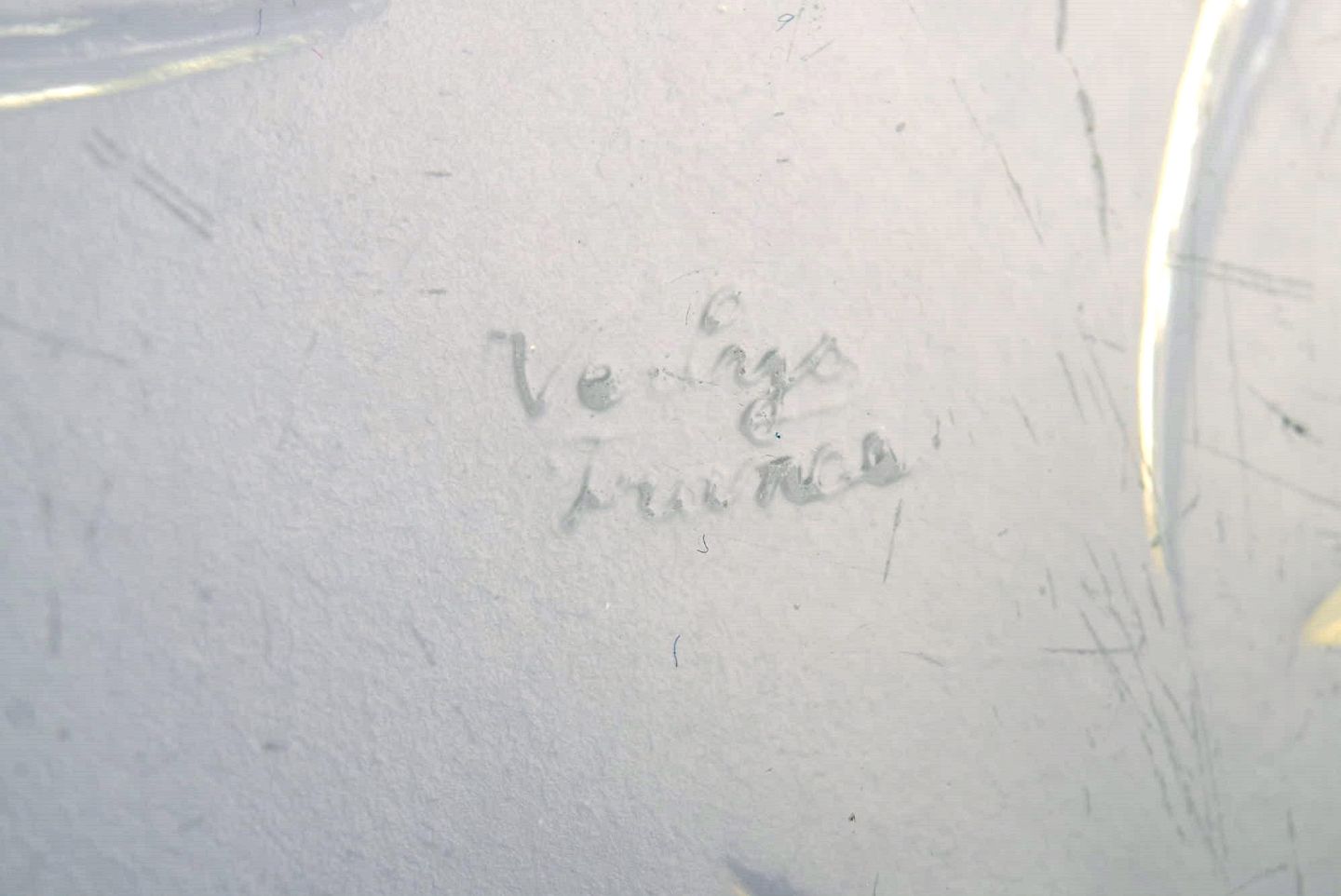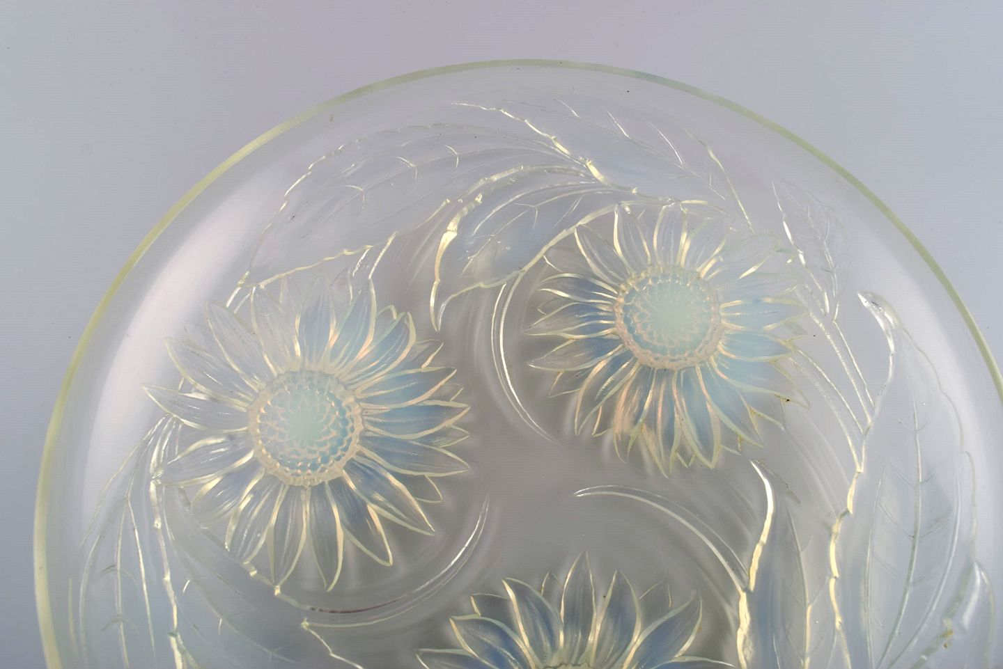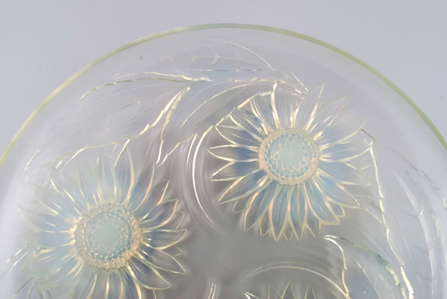 Verlys, Frankrig. Stor art deco skål i mundblæst kunstglas med blomster i relief. 1940'erne. Måler: 35 x 6,8 cm. I flot stand. Stemplet.