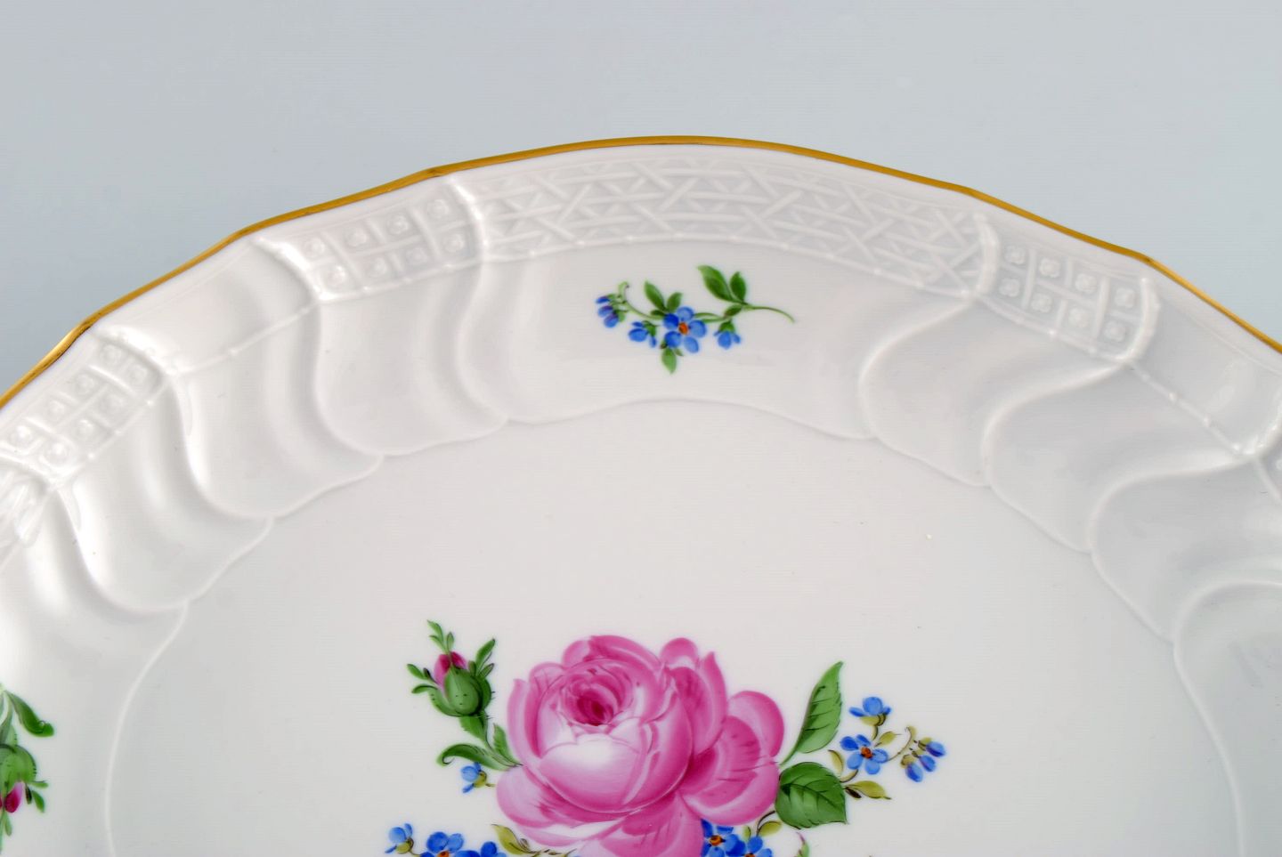 Oval Meissen Pink Rose bowl in hand-painted porcelain with gold edge. Early 20th century. Measures: 23.5 x 19.5 x 4 cm. In excellent condition. Stamped. 1st factory quality.