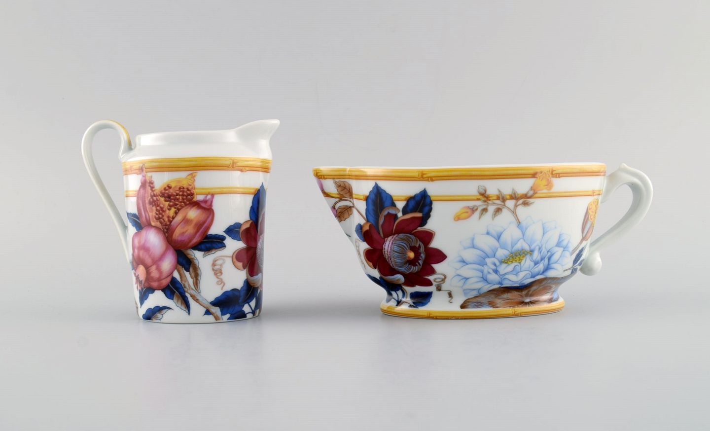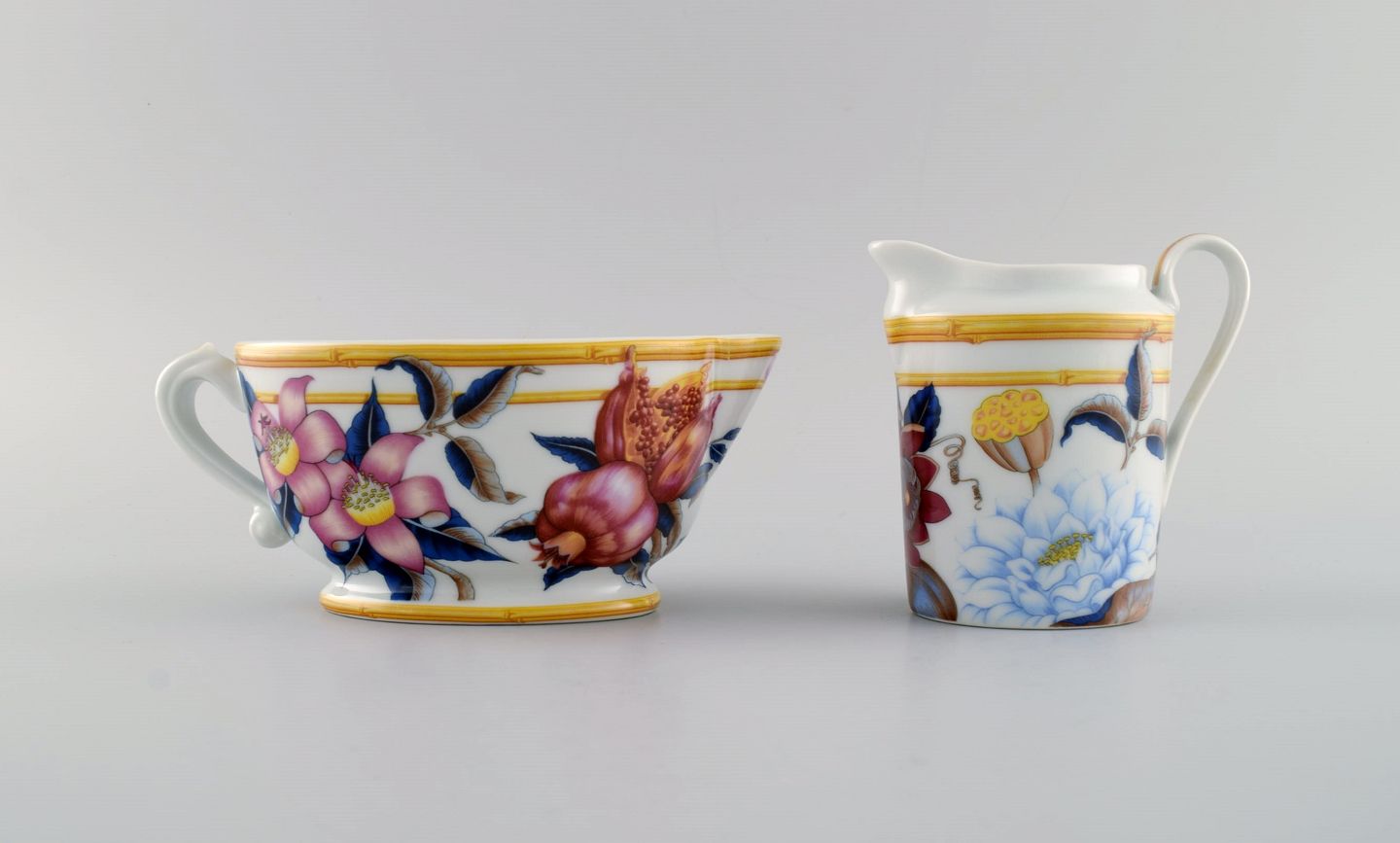 Porcelaine de Paris. "Aurore Tropicale". Tre kander i porcelæn dekoreret med blomster, granatæbler og bambus. 1980'erne.