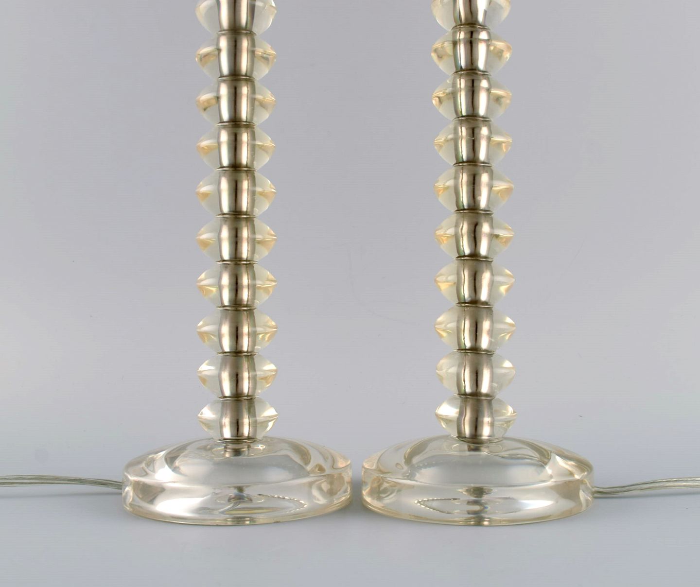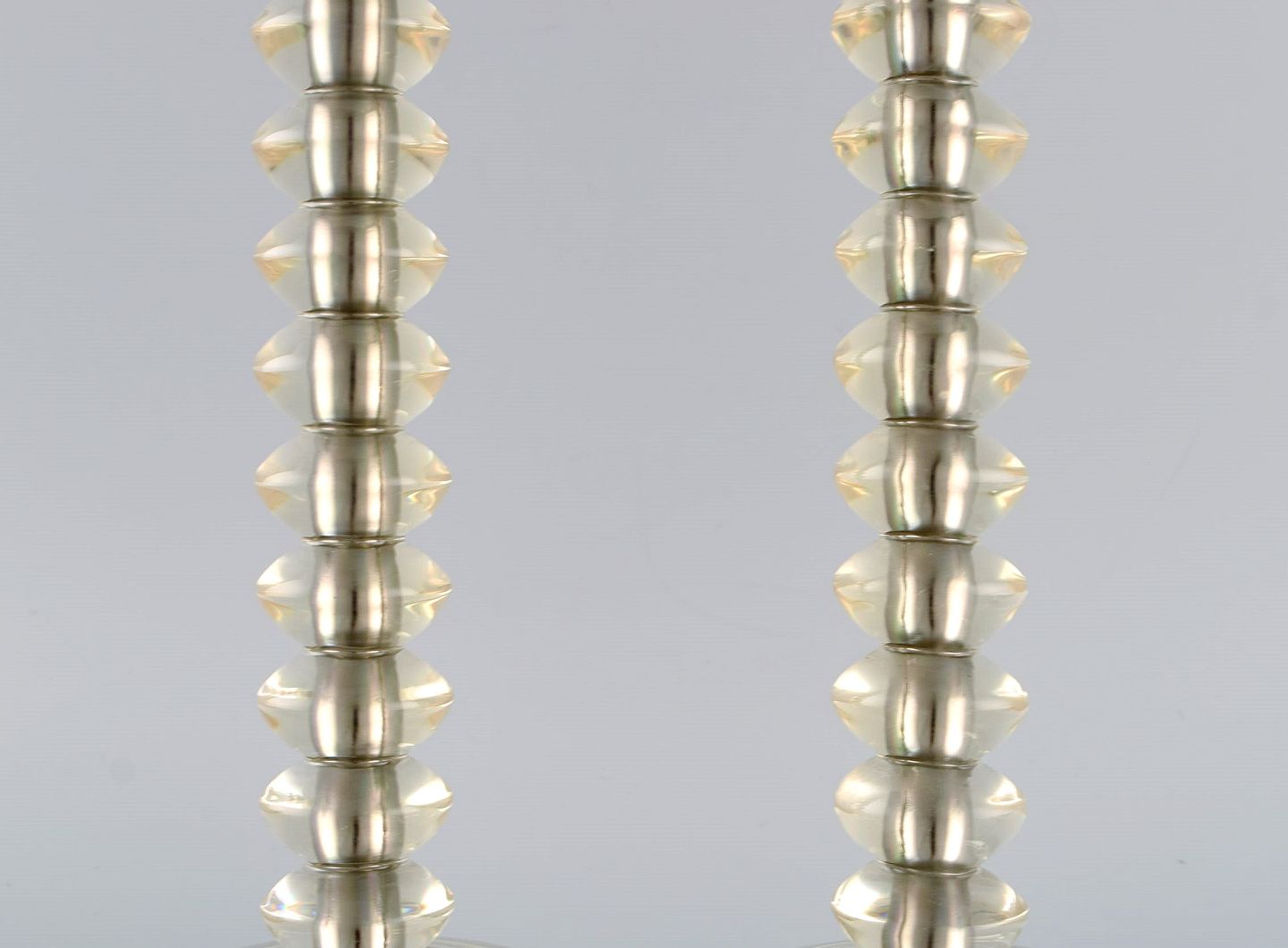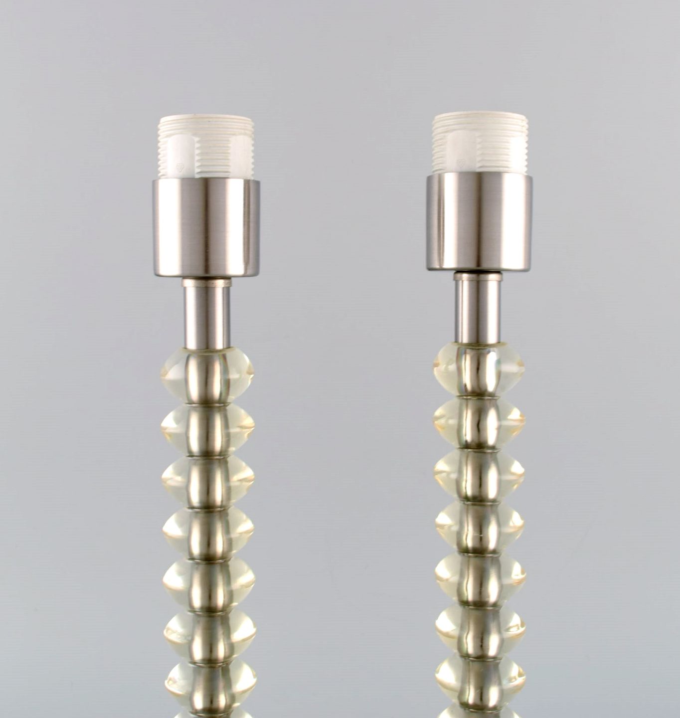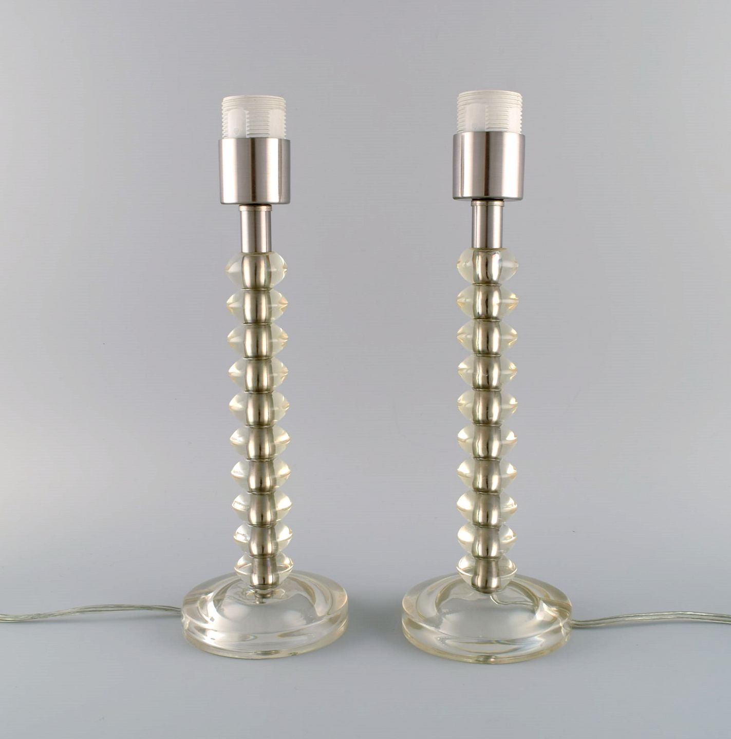 Skandinavisk designer. Et par vintage bordlamper i plexiglas og forkromet metal. 1970'erne. Måler: 34 x 11 cm. I flot stand.
