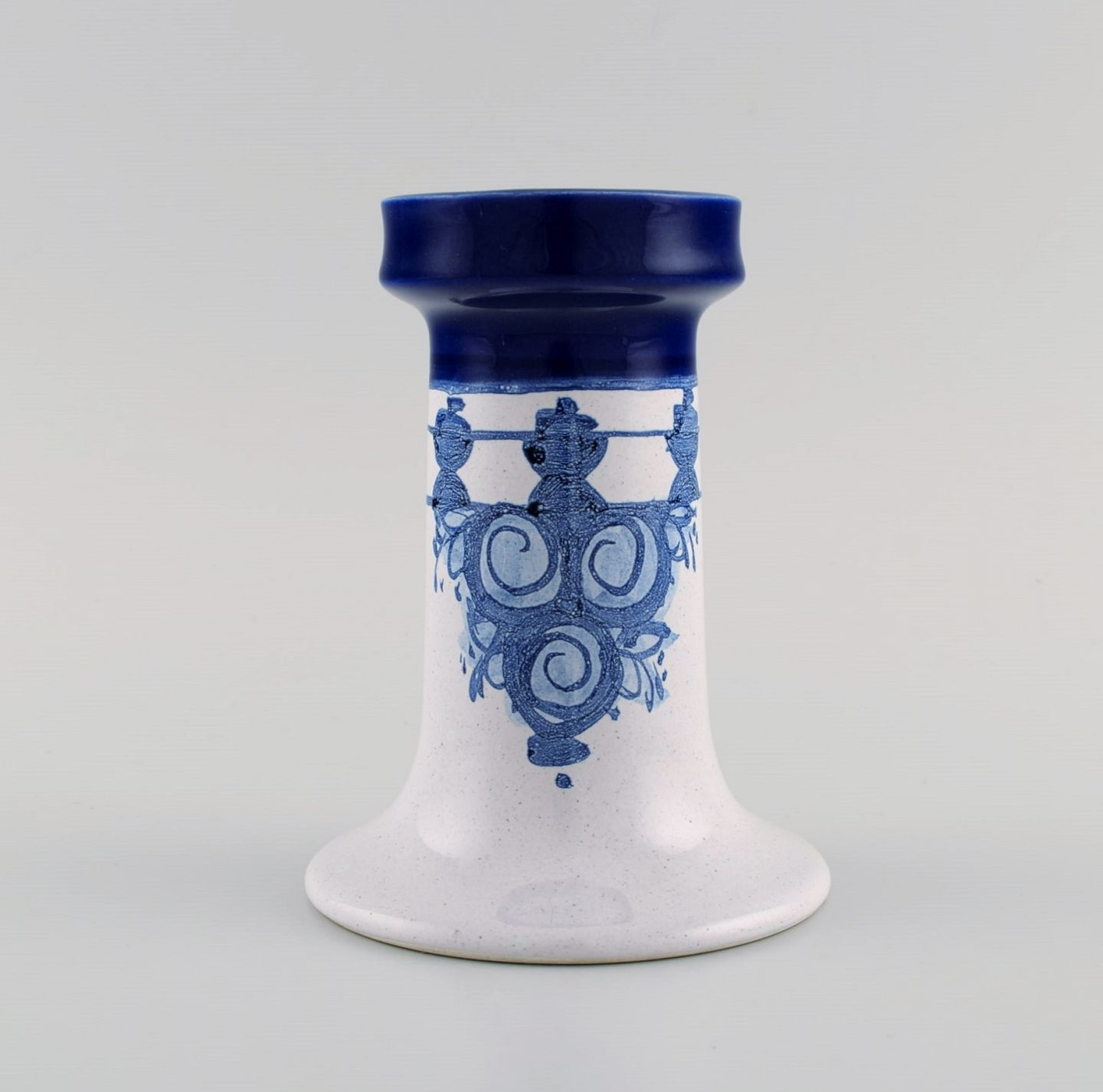 Bjørn Wiinblad (1918-2006), Danmark. Tre lysestager i håndmalet og glaseret keramik. Modelnummer L77 og L76. Dateret 1979-80.