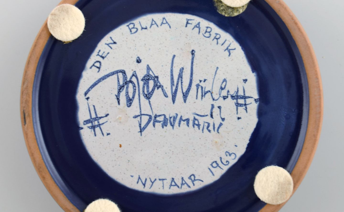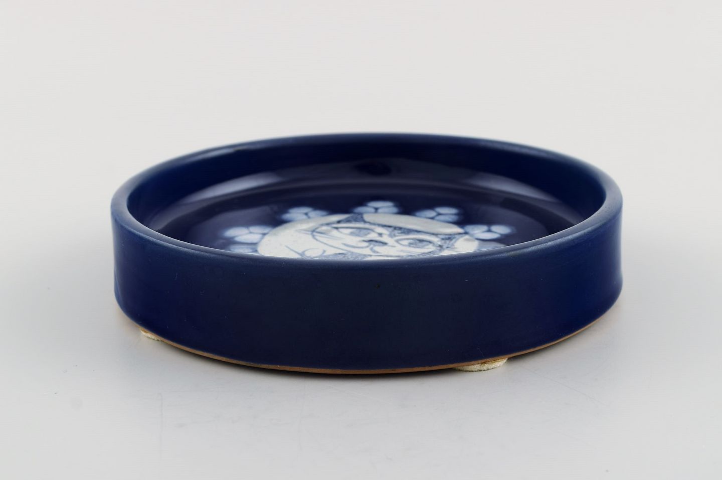 Bjørn Wiinblad (1918-2006), Danmark. Unika skål / fad i glaseret keramik med håndmalet kat. Dateret 1963. Måler: 13,5 x 3 cm. I flot stand. Signeret og dateret.