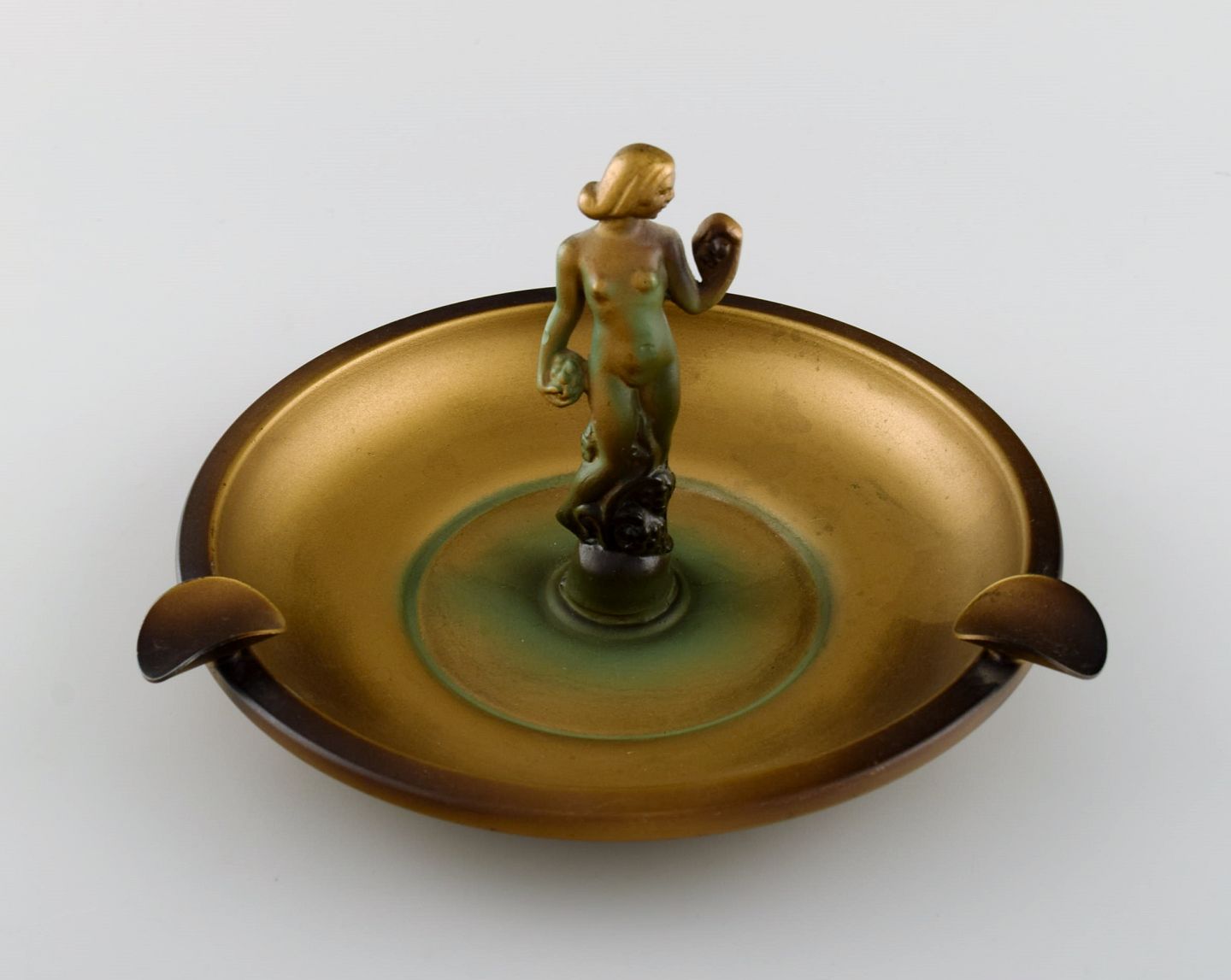 Zicu, Sverige. Stor art deco askebæger og skål i patineret metal. Midt 1900-tallet. Askebægret måler: 19 x 11 cm. I flot stand. Mærkat.