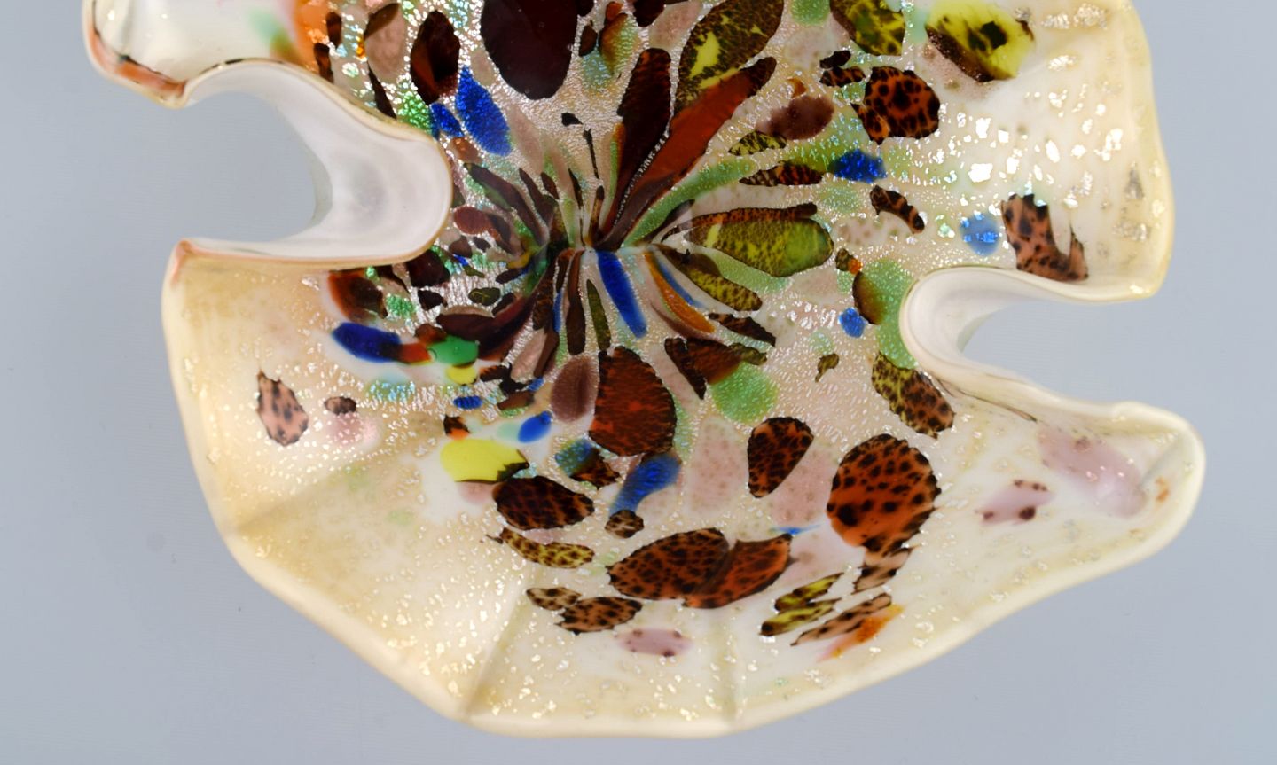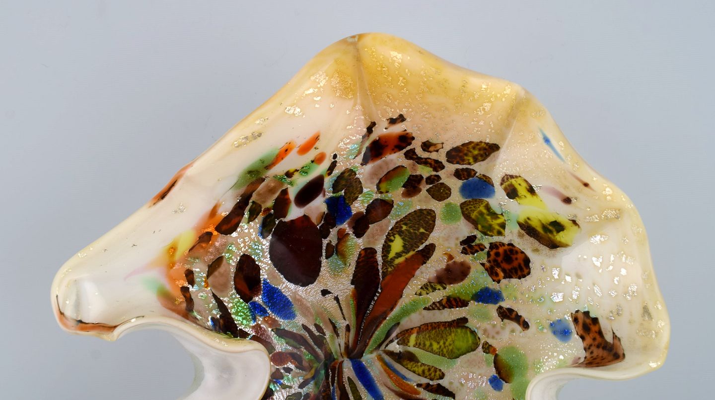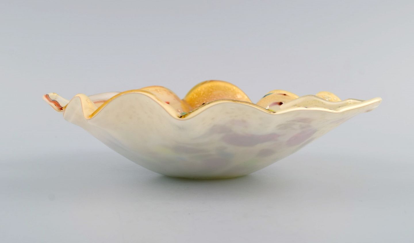 Organisk formet Murano skål i polykromt mundblæst kunstglas med bølget kant. Italiensk design, 1960'erne.
