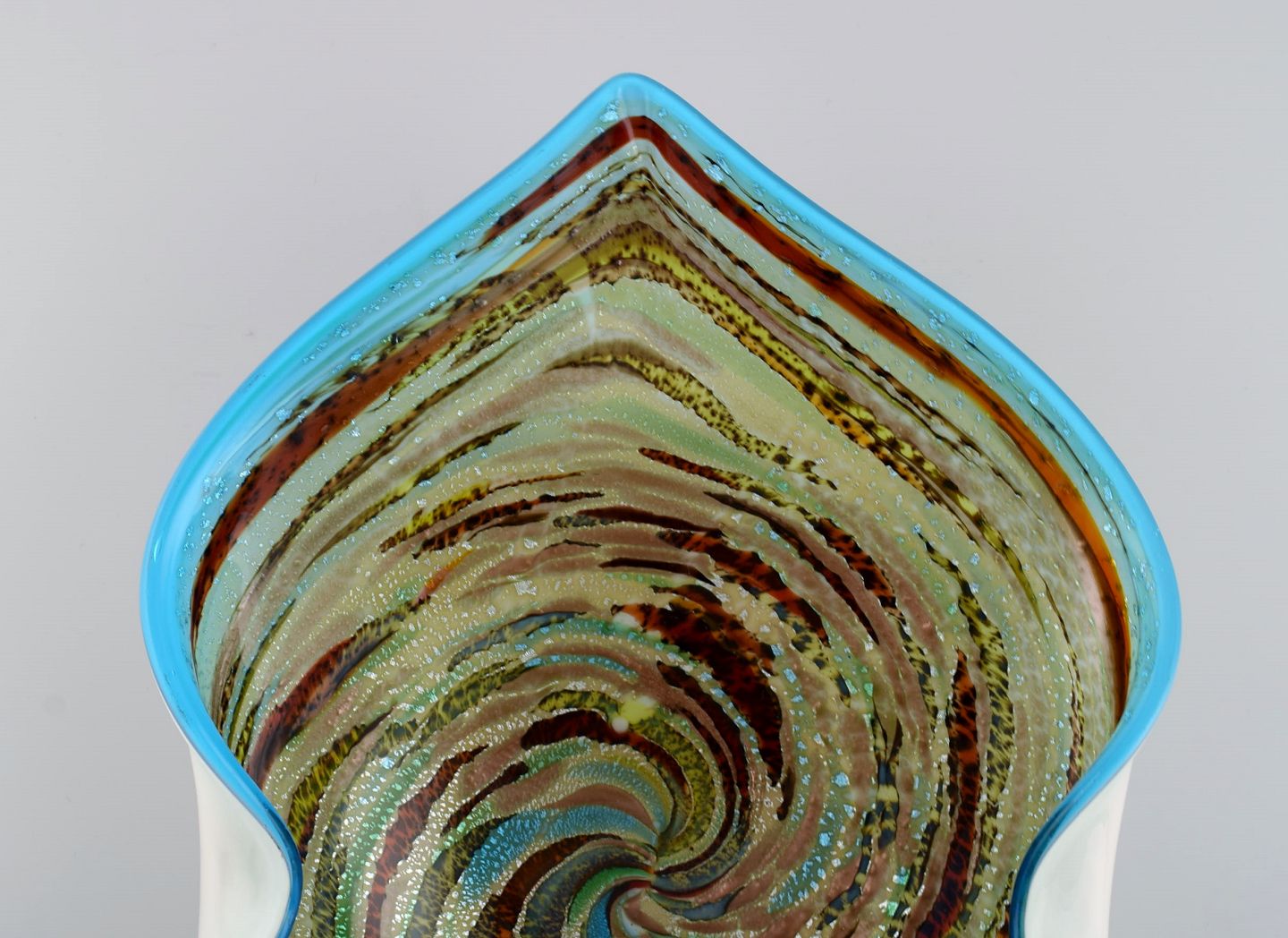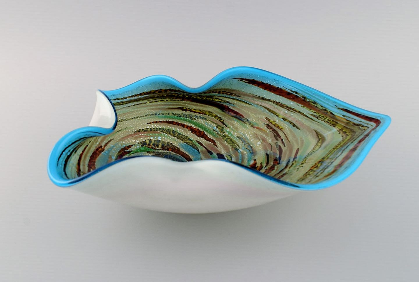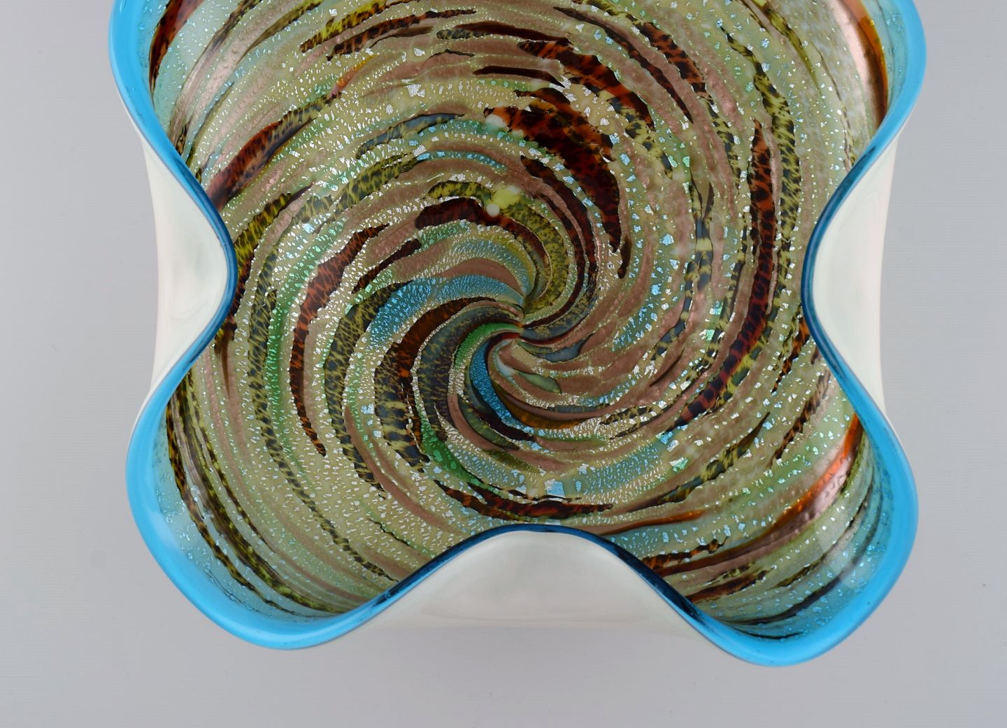 Stor Murano skål i polykromt mundblæst kunstglas med bølget kant. Italiensk design, 1960'erne. Måler: 33,5 x 9 cm I flot stand.