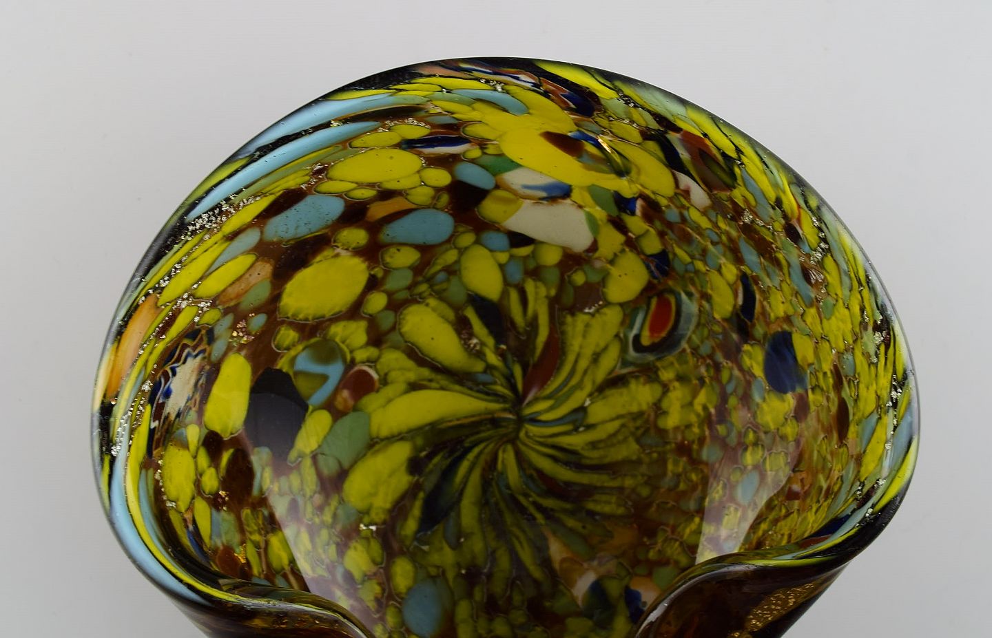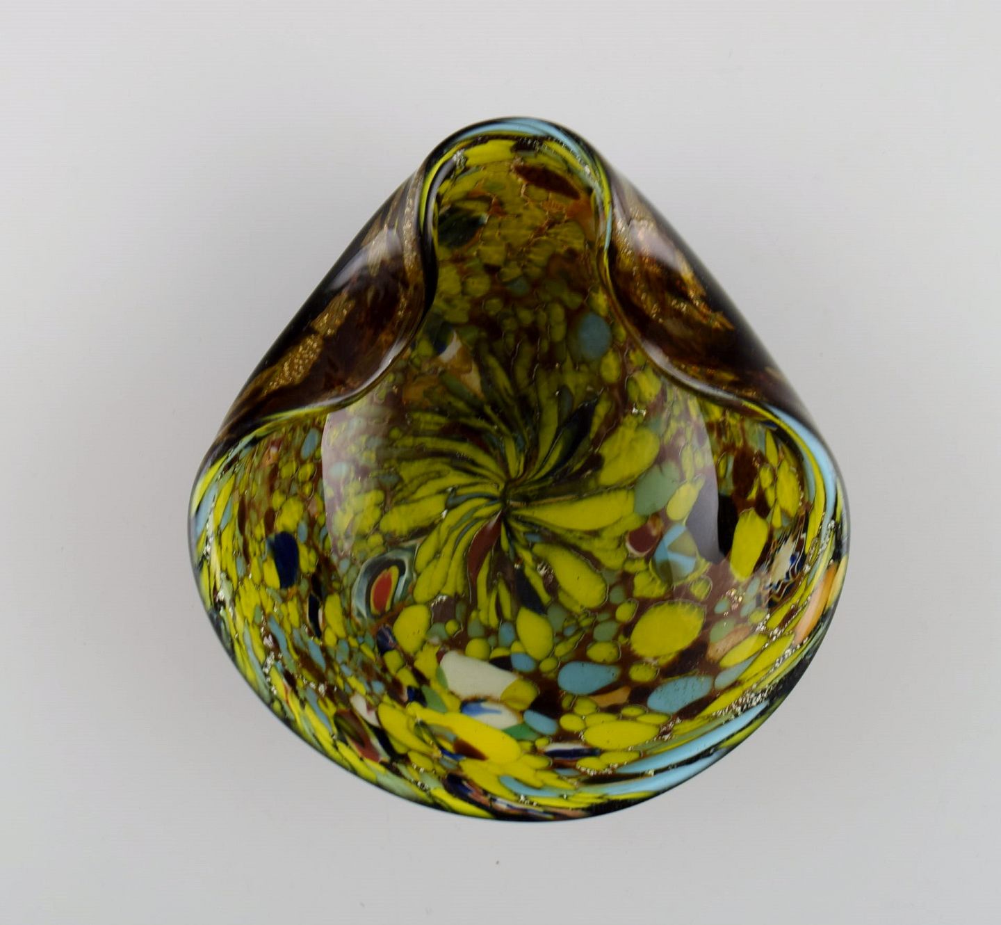 Lille Murano skål i polykromt mundblæst kunstglas. Italiensk design, 1960'erne. Måler: 13,5 x 5 cm I flot stand.