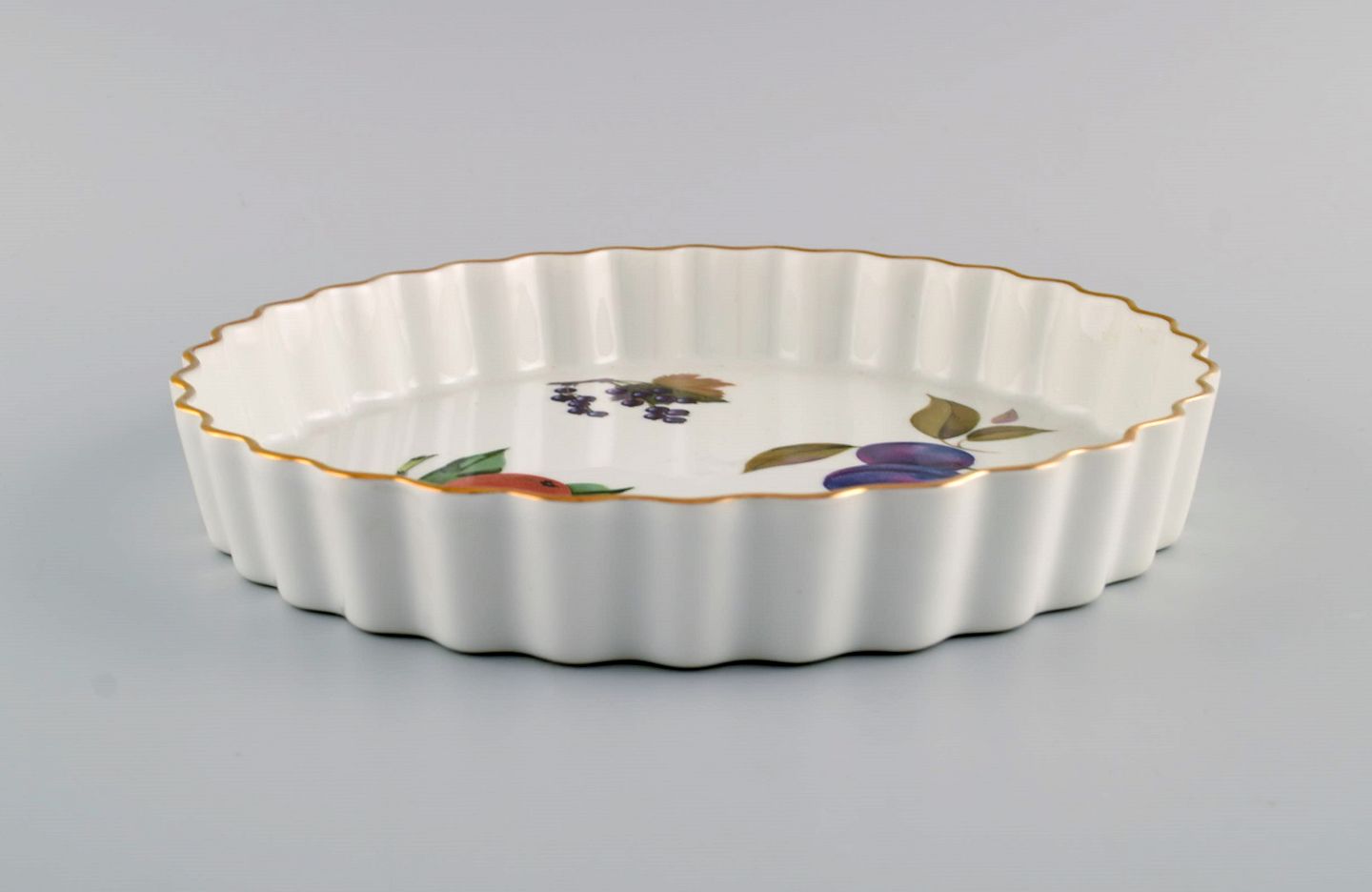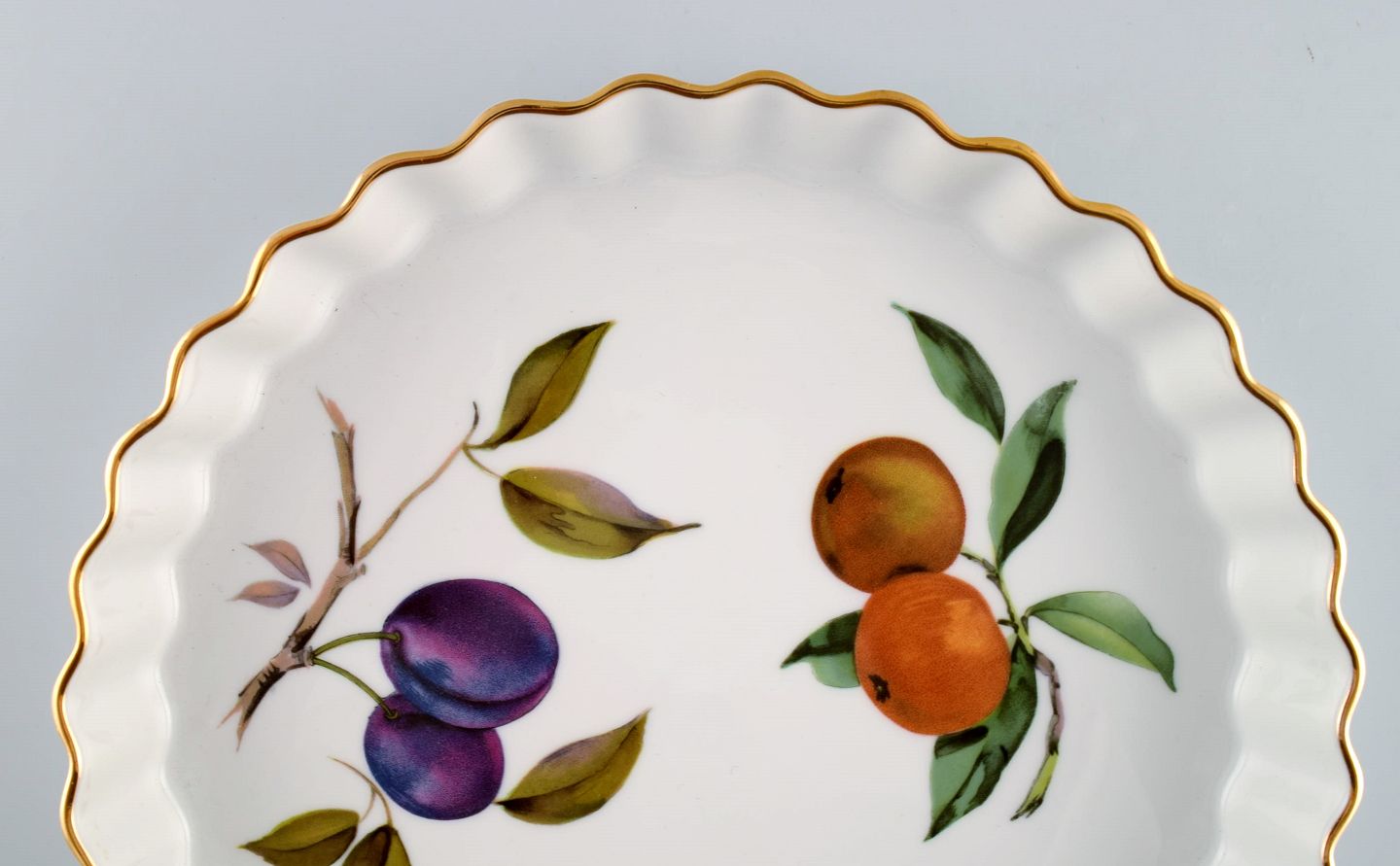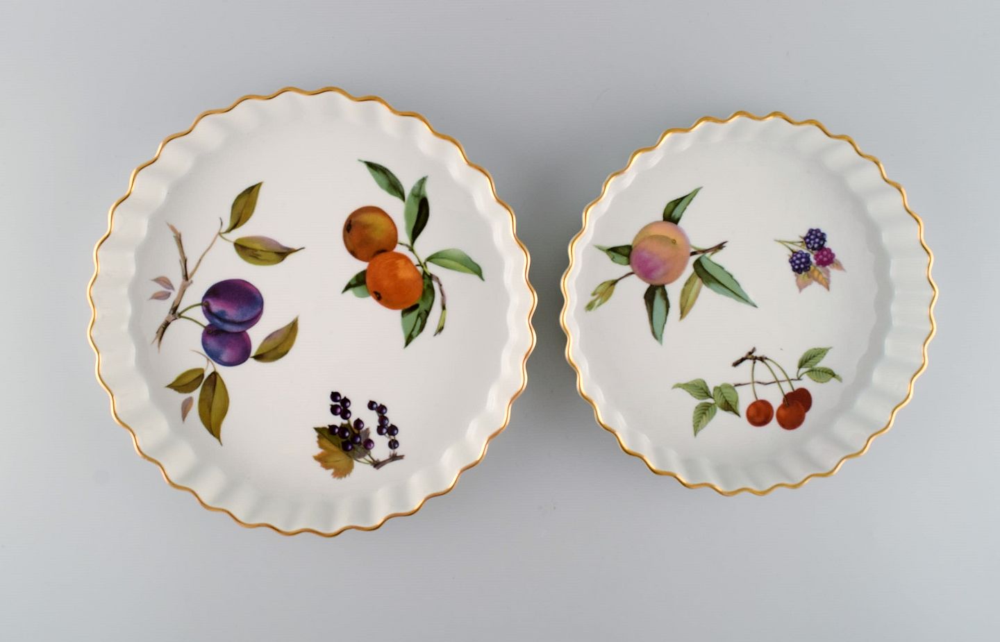 Royal Worcester, England. To Evesham tærtefade i porcelæn dekoreret med frugter og guldkant. 1980'erne.