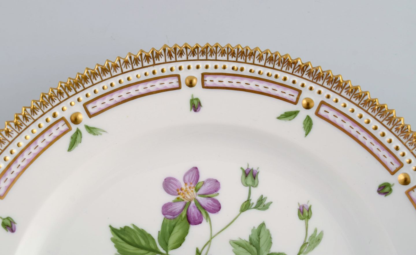 Royal Copenhagen Flora Danica frokosttallerken i håndmalet porcelæn med blomster og gulddekoration. Modelnummer 20/3550.