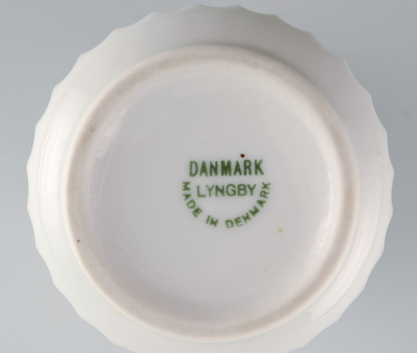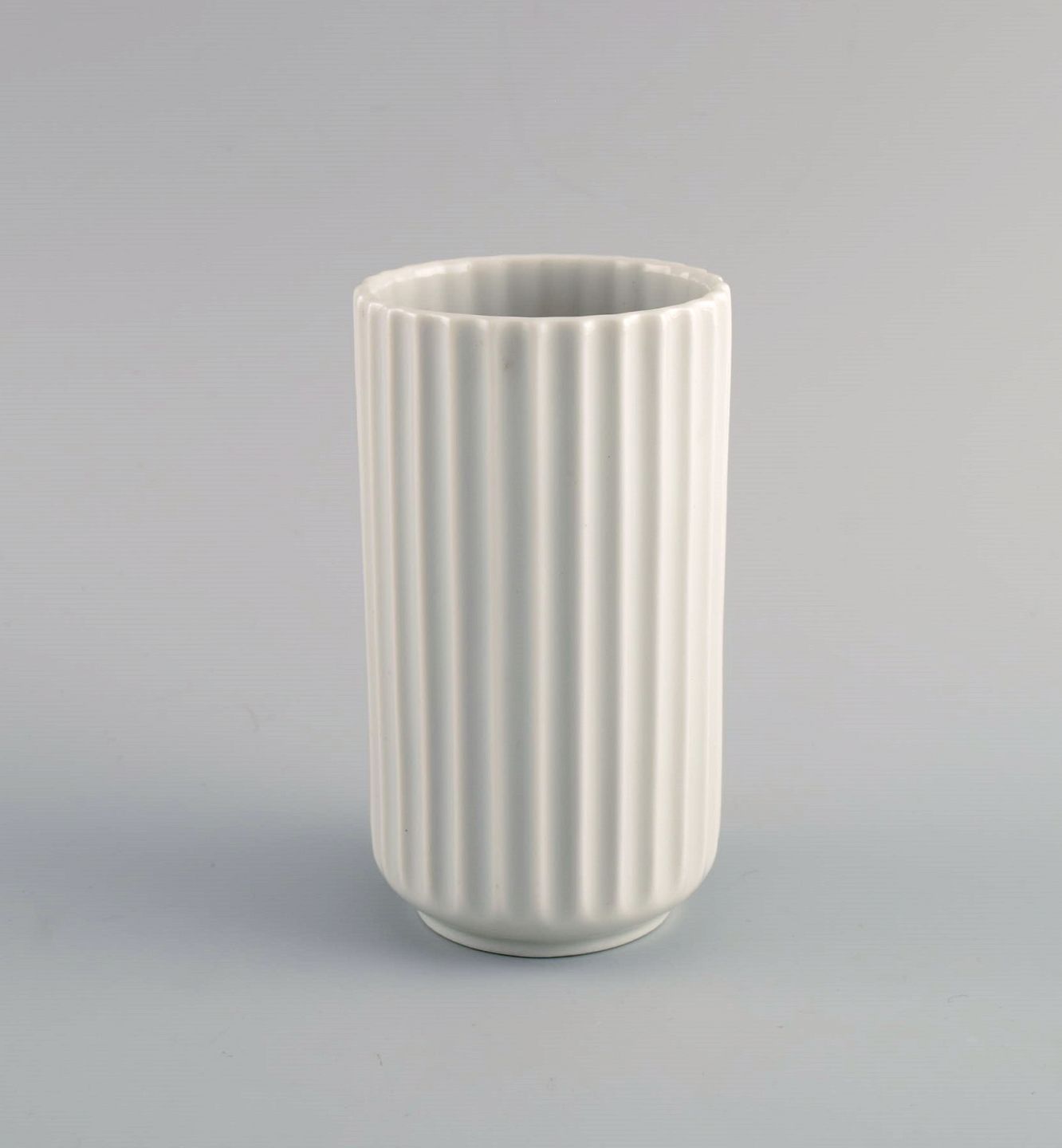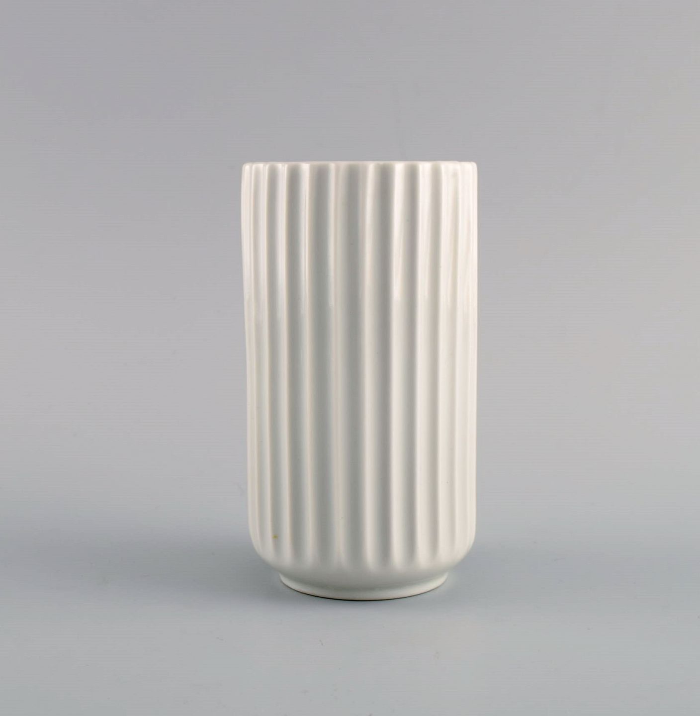 Tidlig Lyngby porcelænsvase med kanneleret korpus. Midt 1900-tallet.