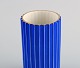 Tidlig blå Lyngby porcelænsvase i med gulddekoration. Midt 1900-tallet. Måler: 10,3 x 5,5 cm. I flot stand. Stemplet.