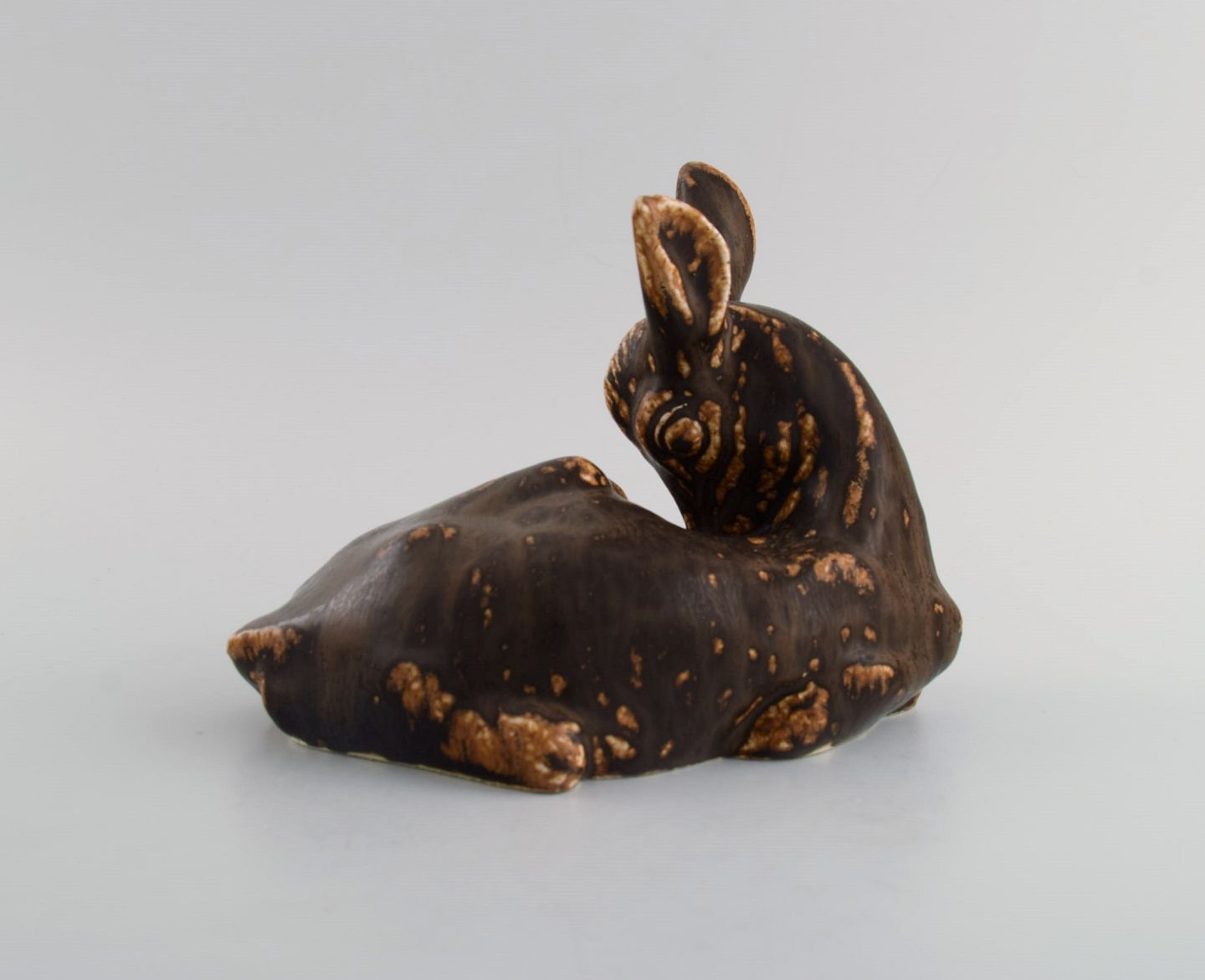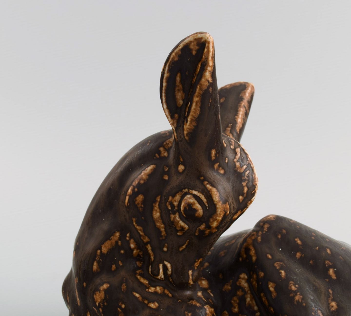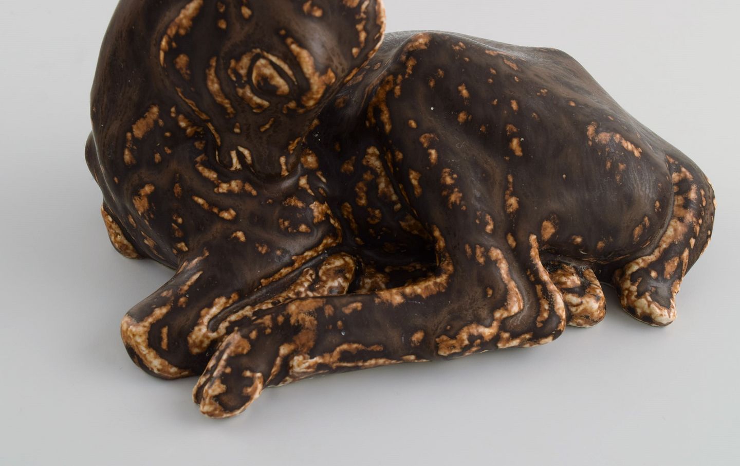 Hugo Liisberg for Saxbo. Liggende hjort i glaseret stentøj. Smuk glasur i brune nuancer. 1940/50'erne. Måler: 18 x 14 cm. I flot stand. Stemplet.