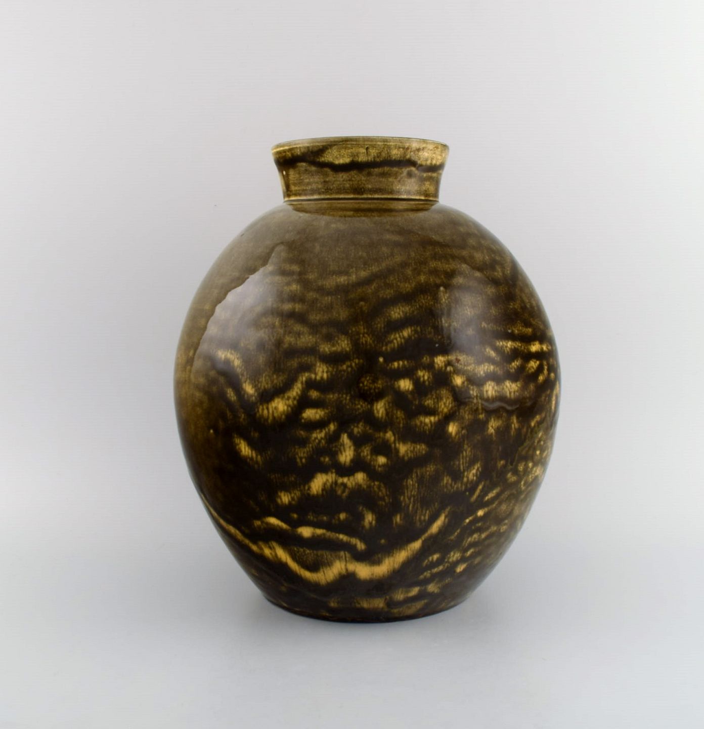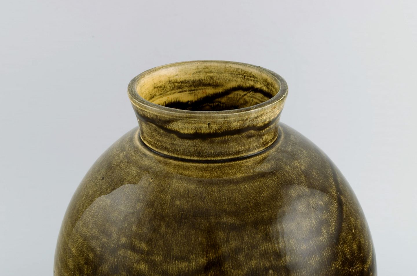 Svend Hammershøi for Kähler, HAK. Stor vase i glaseret stentøj. Smuk gul uranglasur. 1930/40'erne. Måler: 27 x 24 cm. Signeret. I flot stand.