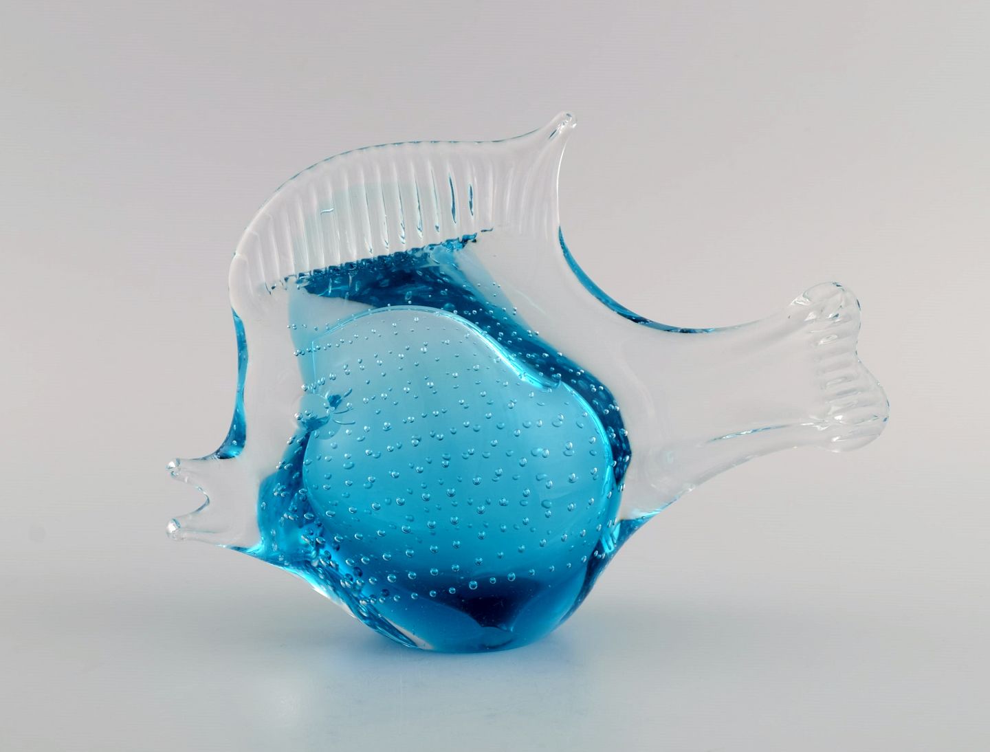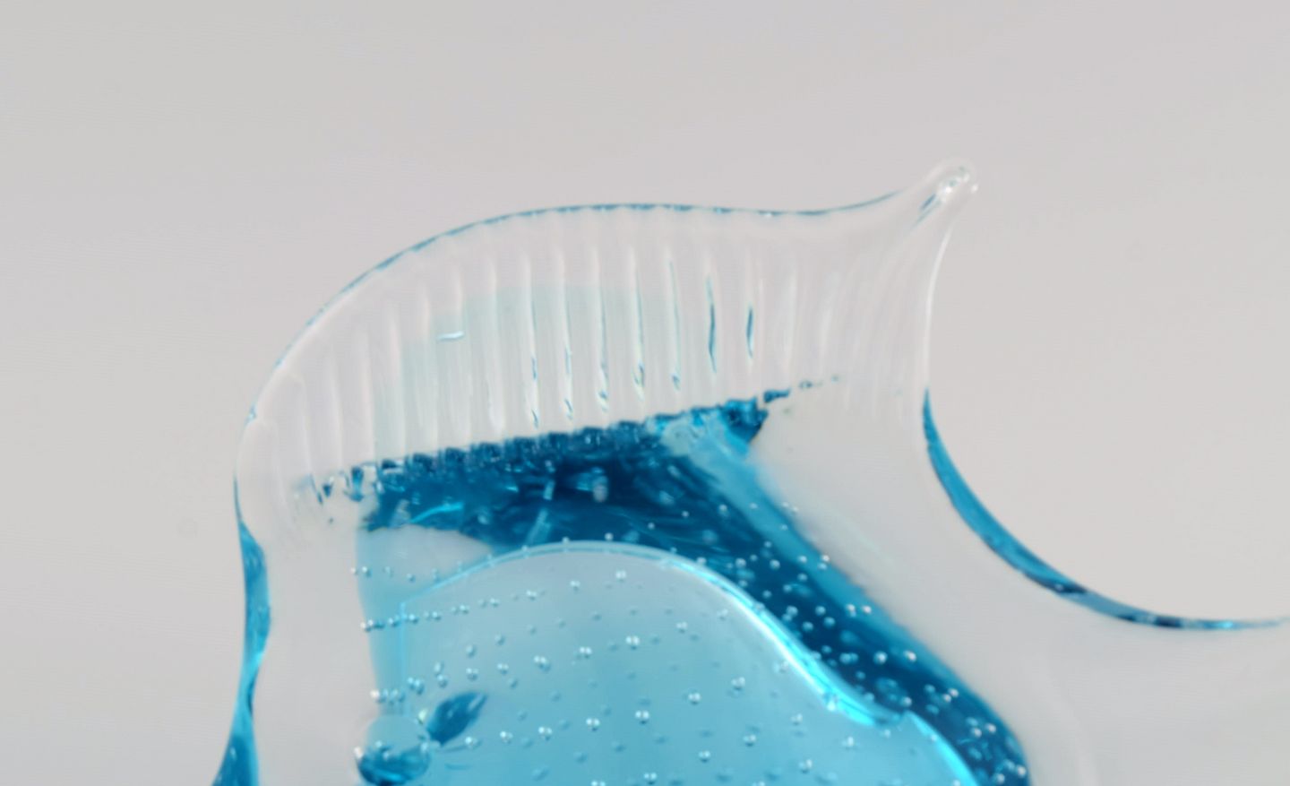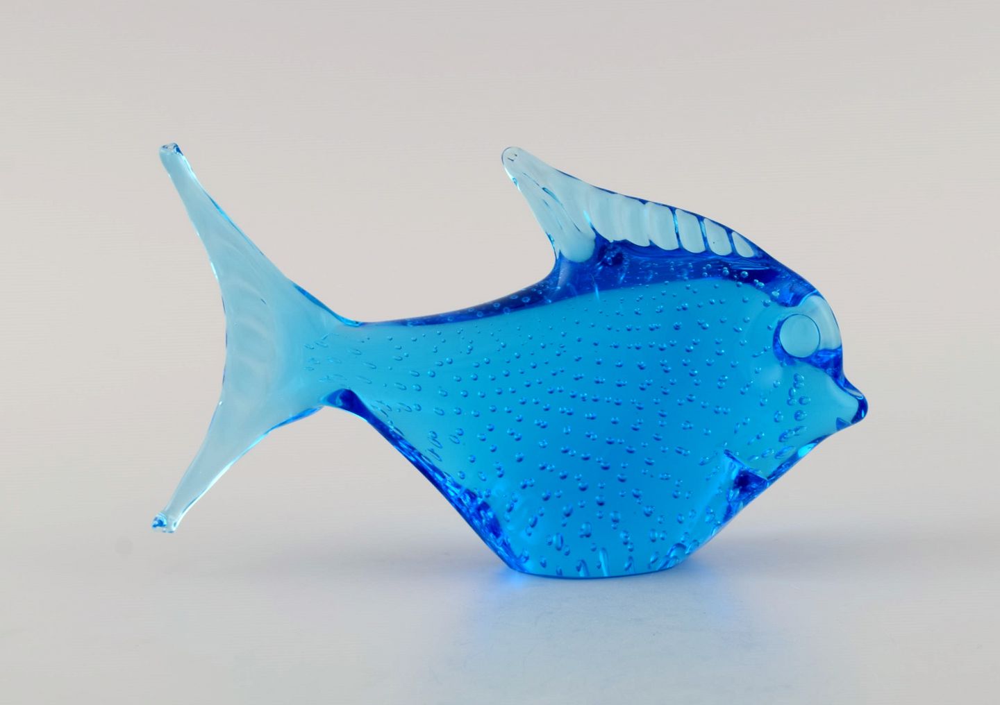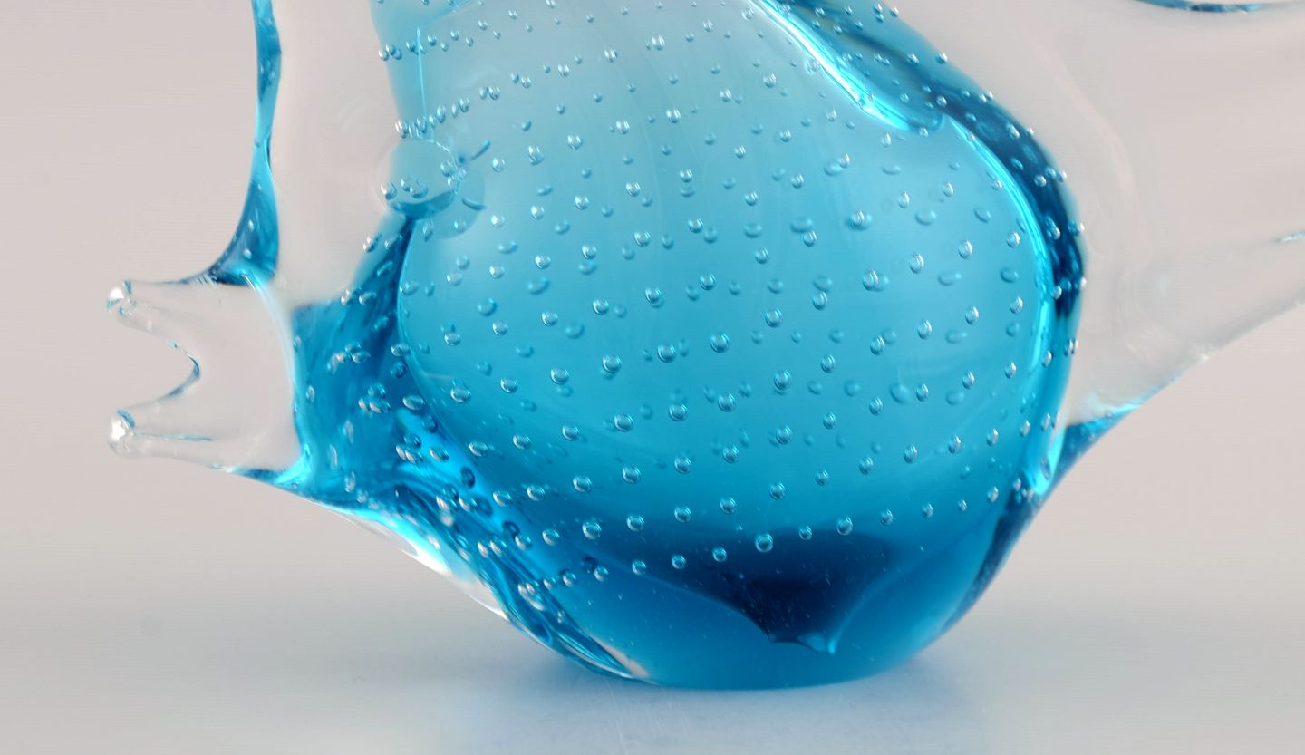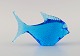 Ronneby, Sweden. Two fish in blue mouth-blown art glass. 1970s.