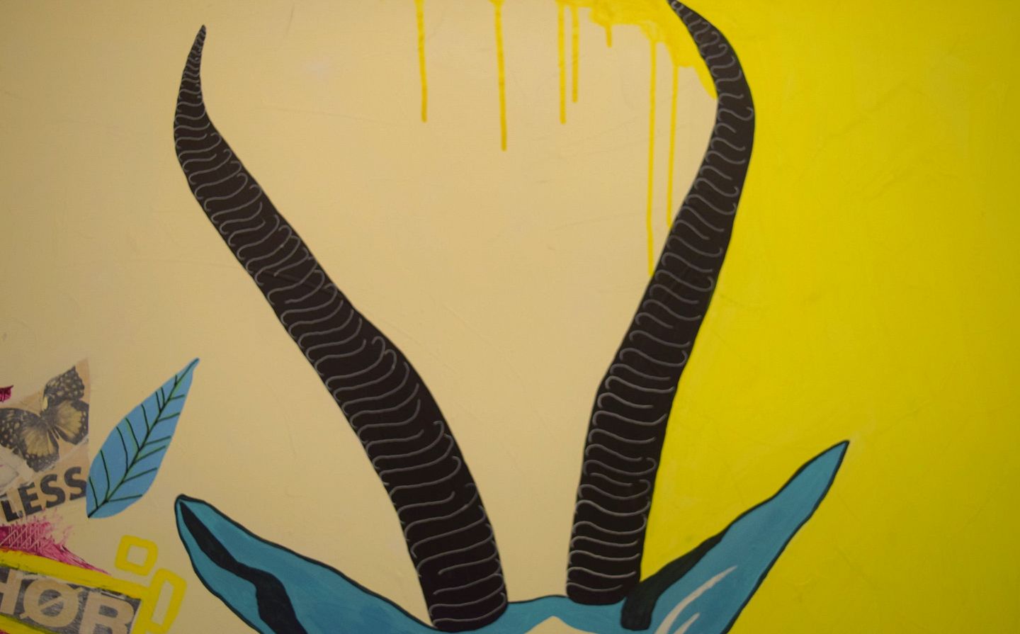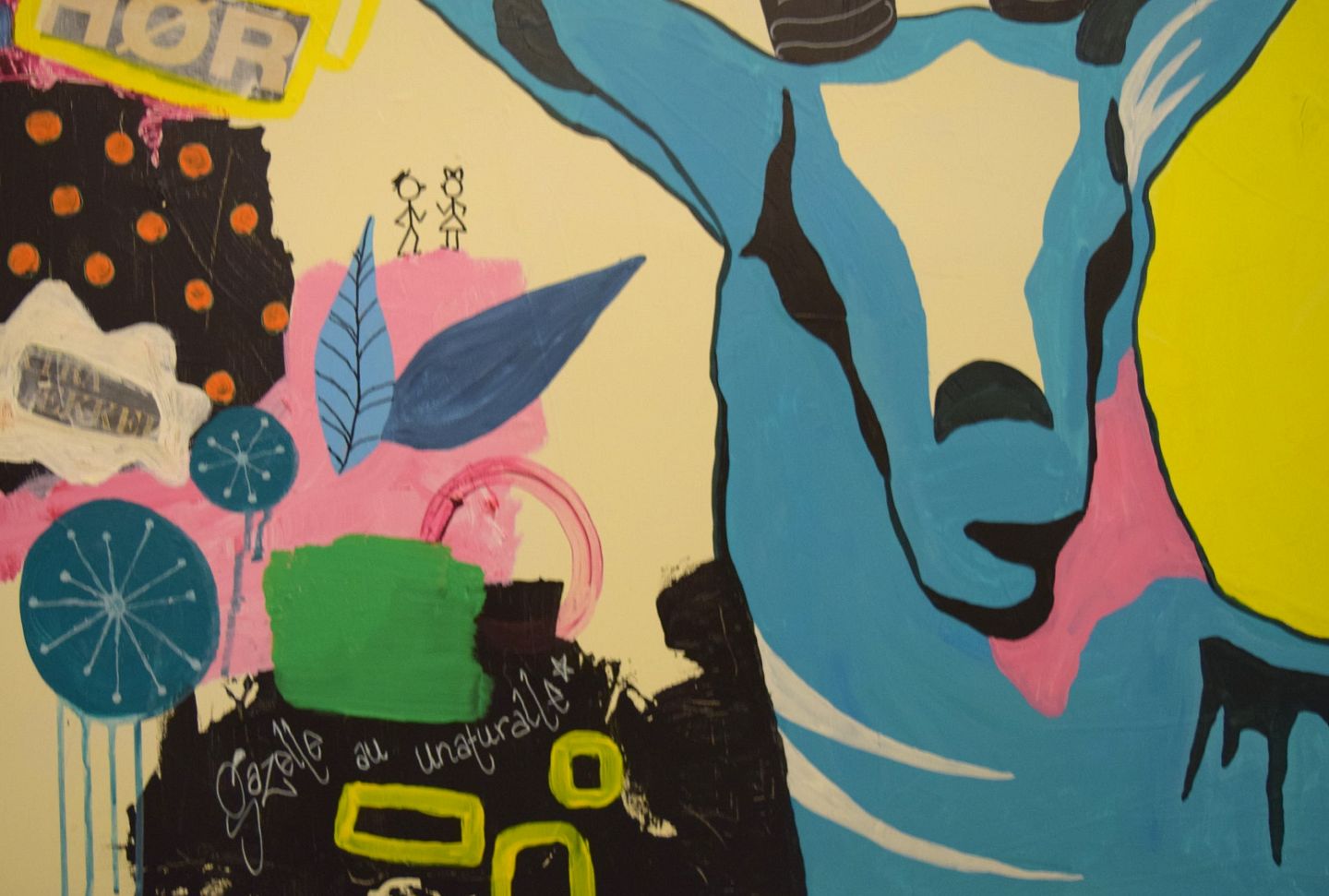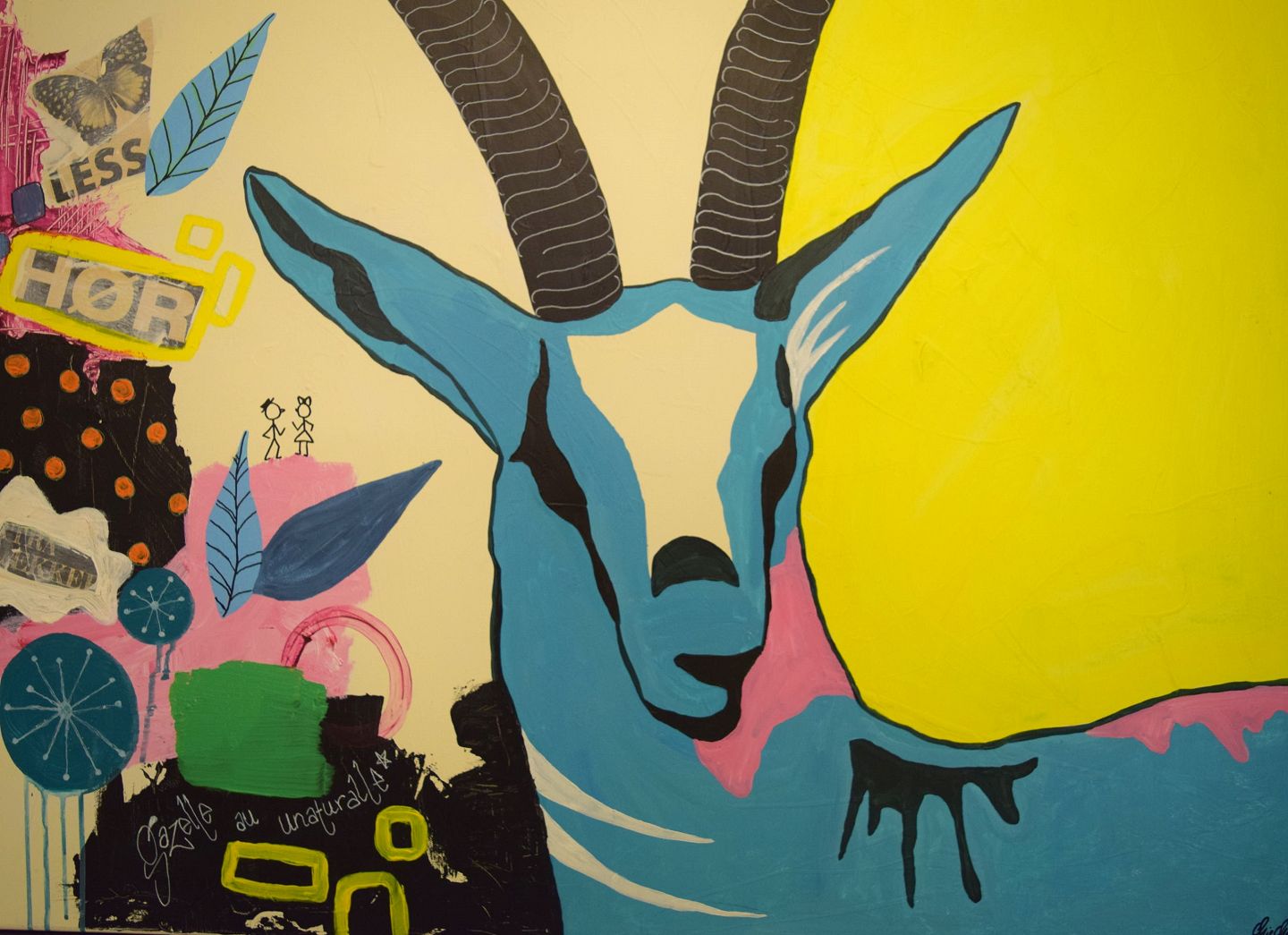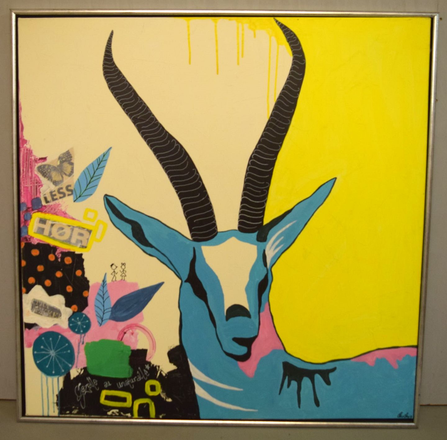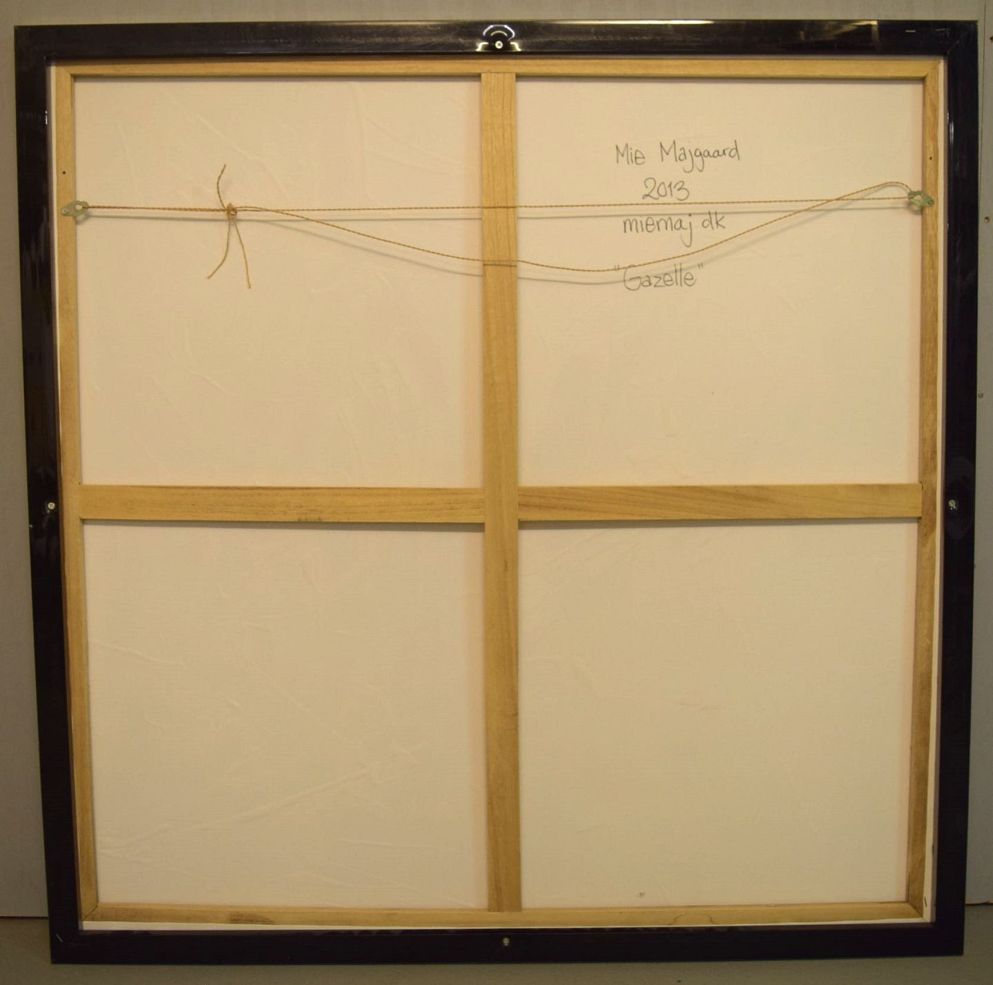 Mie Majgaard, dansk kunstner. Stort maleri. Mixed media på lærred. "Gazelle". Dateret 2013. Lærredet måler: 99 x 99 cm. Rammen måler: 1,5 cm. I flot stand. Signeret og dateret.