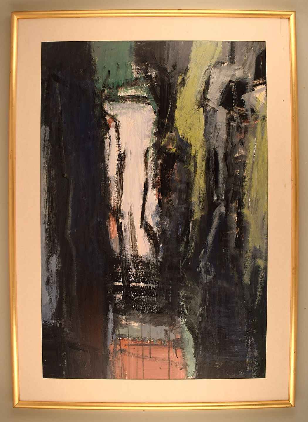 Ubekendt kunstner. Olie på plade. Abstrakt komposition. Dateret 1999.