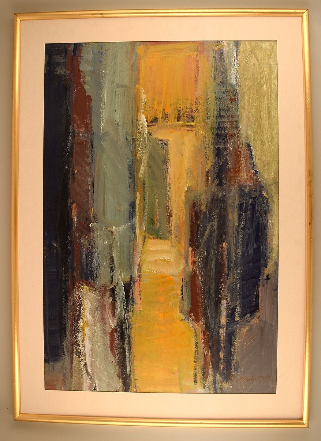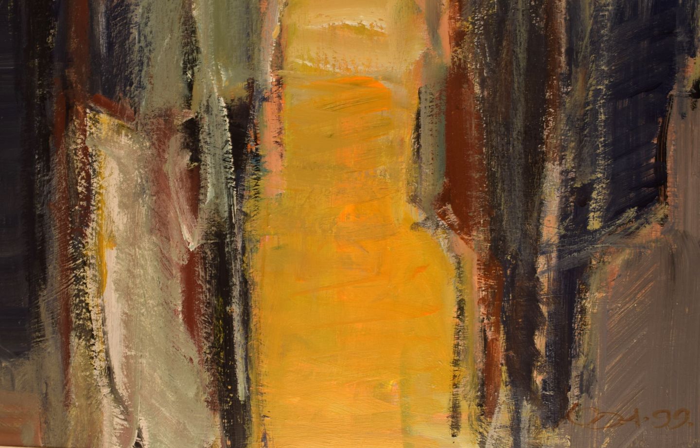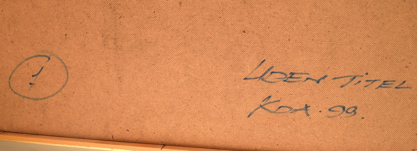 Ubekendt kunstner. Olie på plade. Abstrakt komposition. Dateret 1999.