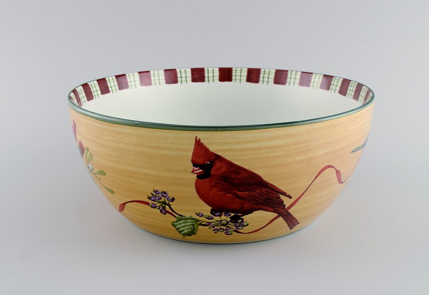 Catherine McClung for Lenox. "Winter greetings everyday". To store skåle i glaseret stentøj dekoreret med mistelten, fugle og rødt bånd. Ca. 2000. Måler: 26 x 10,5 cm. I flot stand. Stemplet.