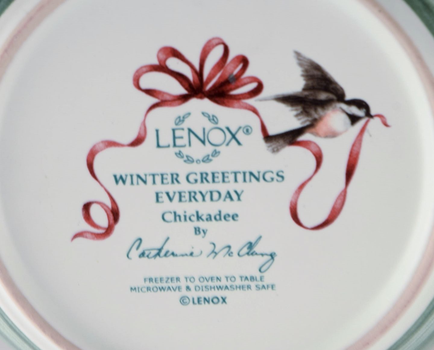 Catherine McClung for Lenox. "Winter greetings everyday". Seks skåle i glaseret stentøj dekoreret med mistelten, fugle og rødt bånd. Ca. 2000. Måler: 17,5 x 6,5 cm. I flot stand. Stemplet.