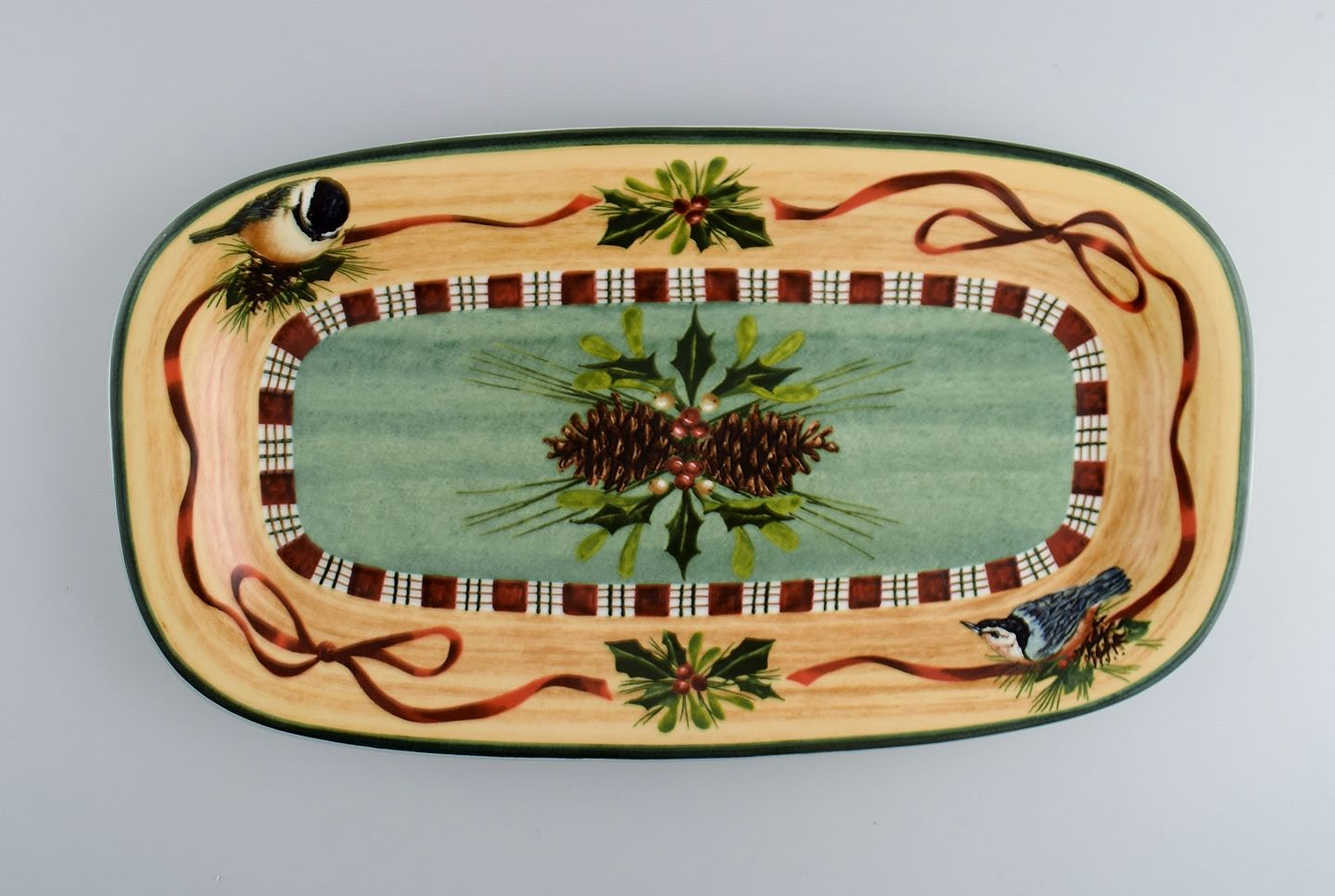 Catherine McClung for Lenox. "Winter greetings". Seks aflange fade i glaseret stentøj dekoreret med mistelten, grankogler og fugle. Ca. 2000. Måler: 36,5 x 20 cm. I flot stand. Stemplet.