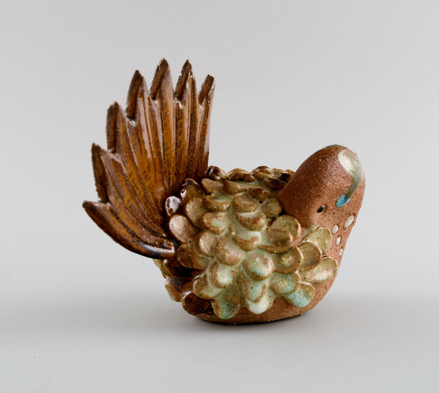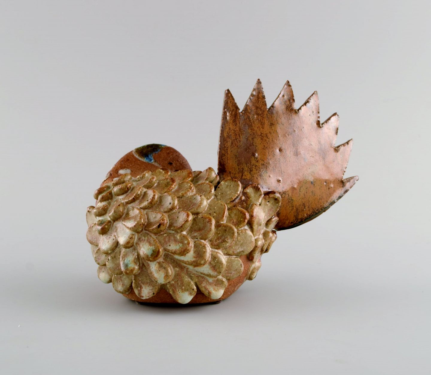 Curt M. Addin (1931-2007) for Glumslöv. Fugl i delvist glaseret stentøj. Svensk design, 1960/70'erne. Måler: 18 x 13,5 cm. I flot stand. Stemplet.