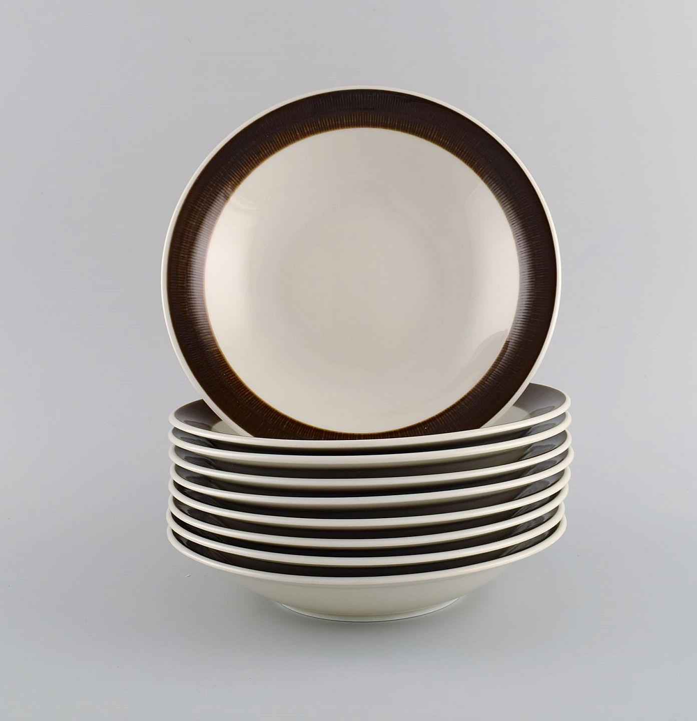 Hertha Bengtson (1917-1993) for Rörstrand. 9 Koka dybe tallerkener i glaseret stentøj. 1960'erne.