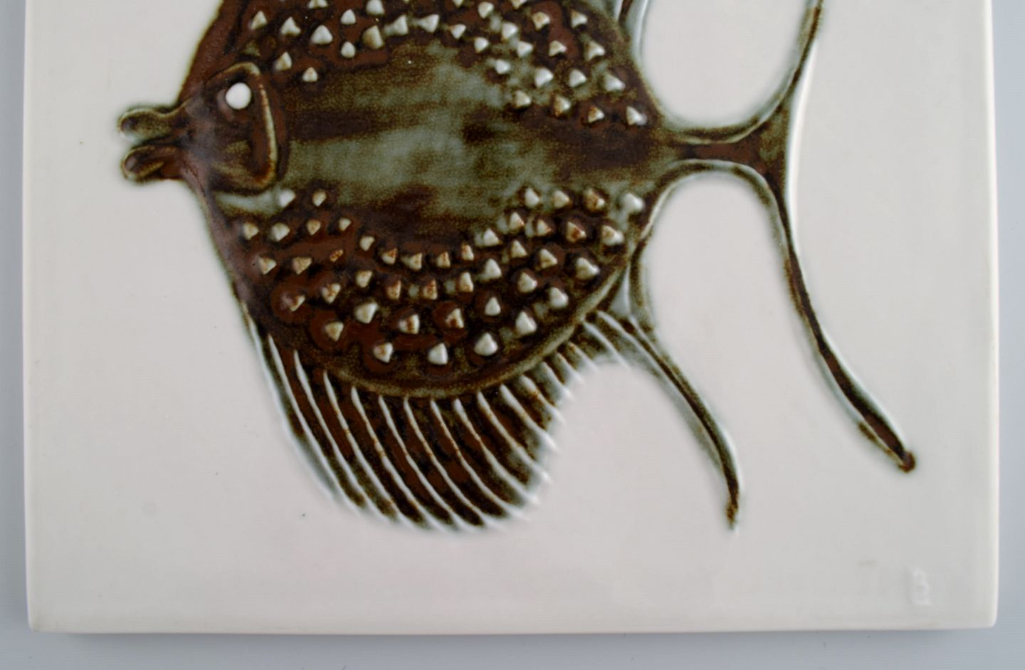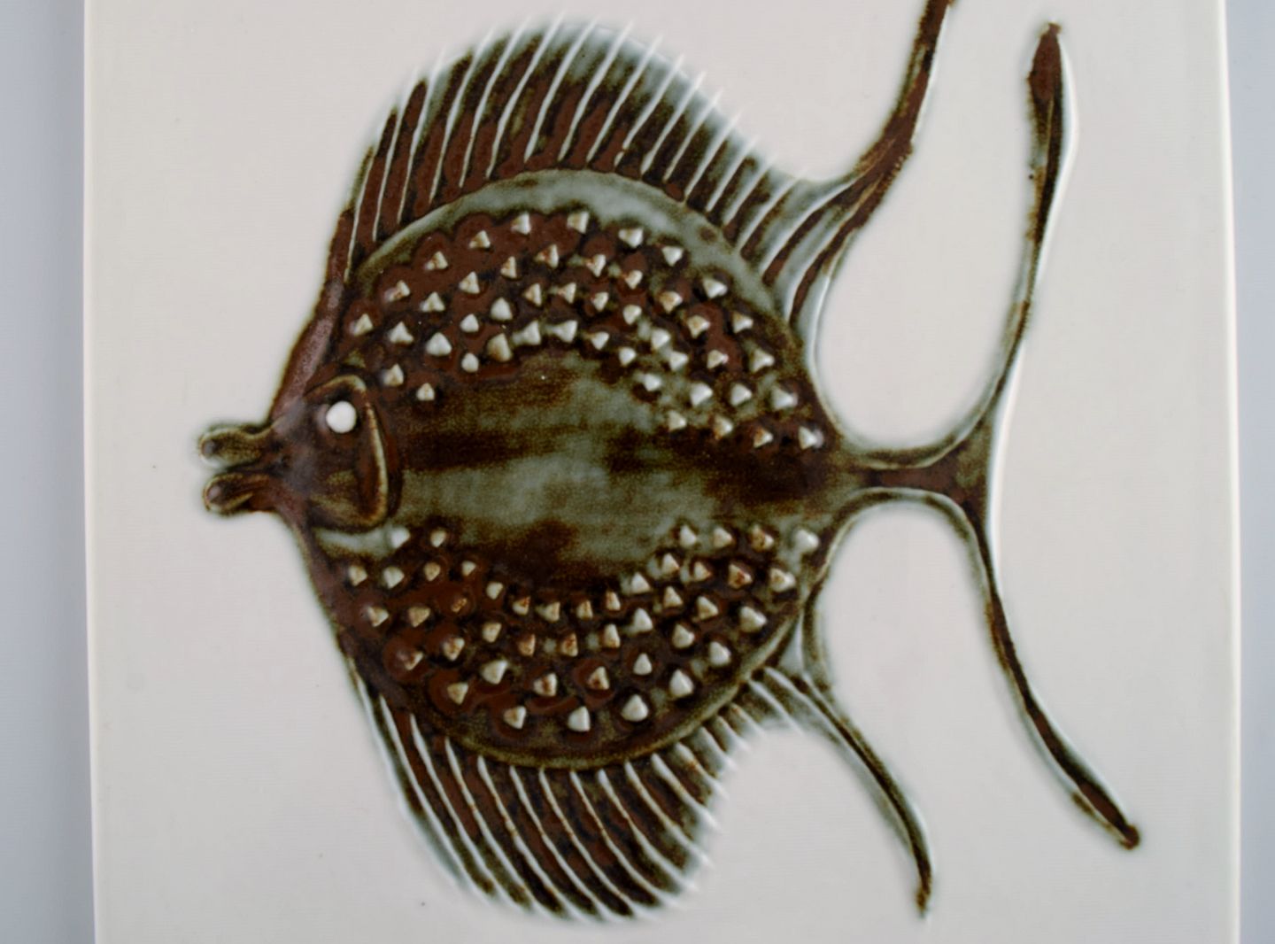 Bertil Lundgren for Rörstrand. "Galleri 1" vægplakette i glaseret porcelæn med fisk. 1970'erne. Måler: 25 x 25 cm. I flot stand. Stemplet.