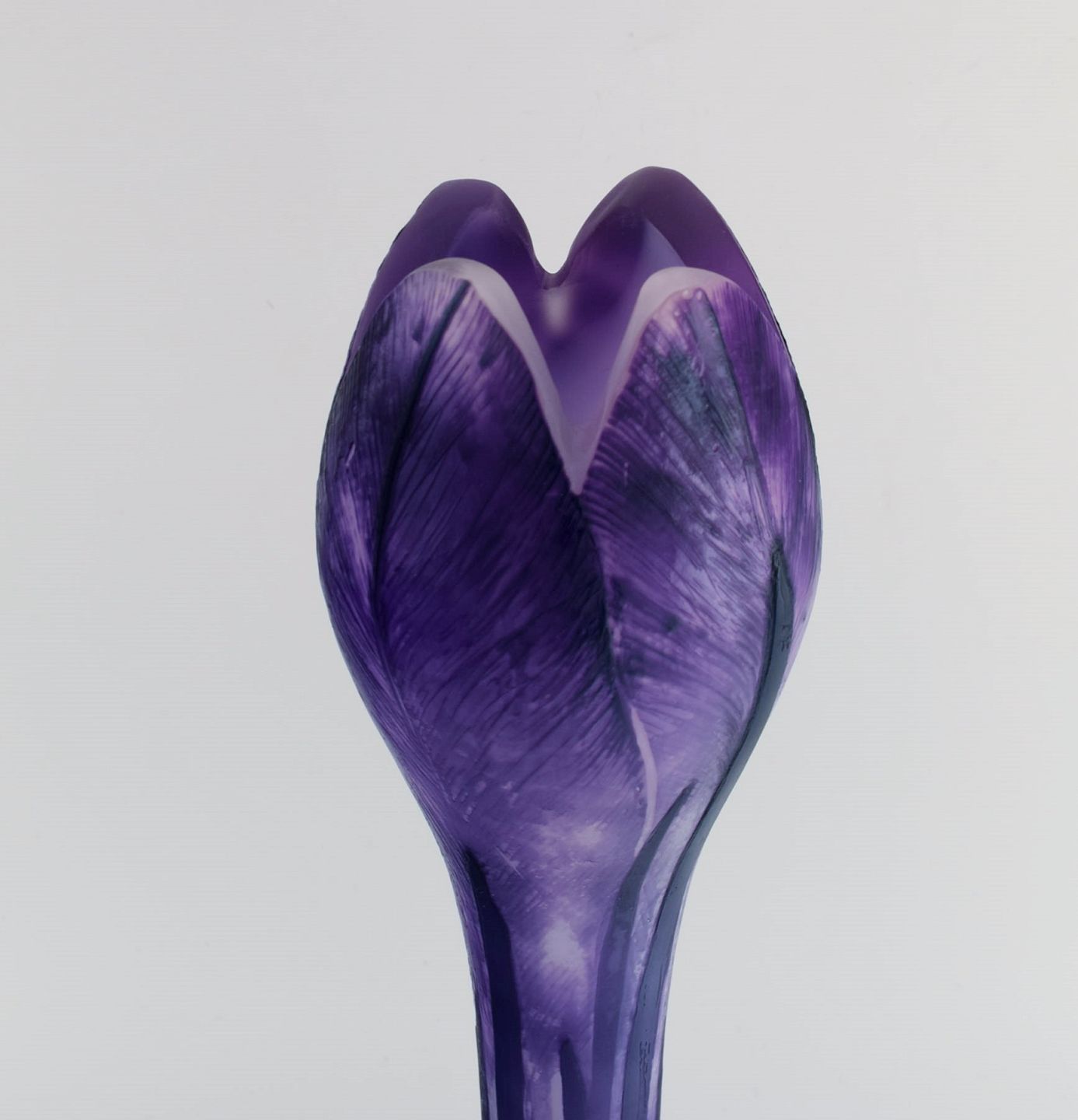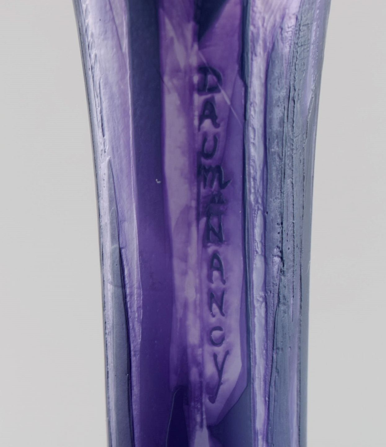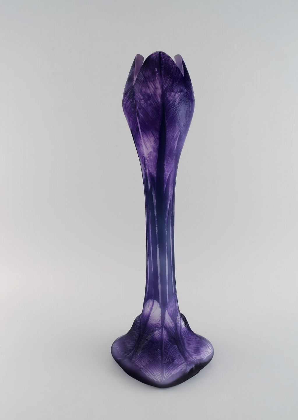 Daum Nancy, Frankrig. Stor art nouveau vase i lilla mundblæst kunstglas. Organisk formet som blomst. Tidligt 1900-tallet.
