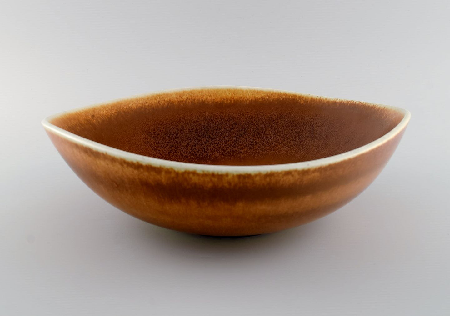 Berndt Friberg (1899-1981) for Gustavsberg Studiohand. Stor skål i glaseret keramik. Smuk glasur i brune nuancer. Dateret 1966. Måler: 32 x 10 cm. I flot stand. Signeret.