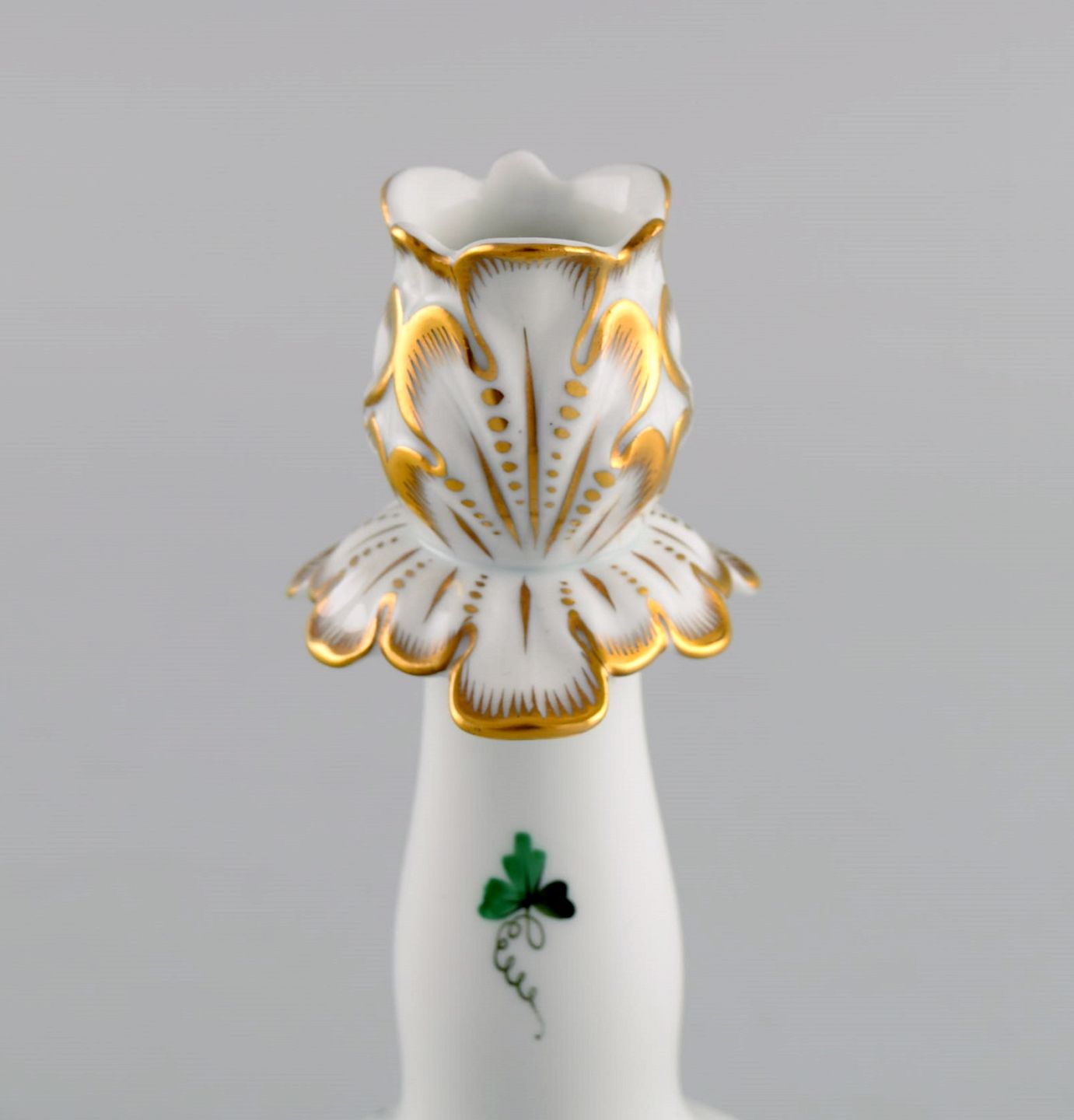 Herend lysestage i håndmalet porcelæn med gulddekoration. Midt 1900-tallet.