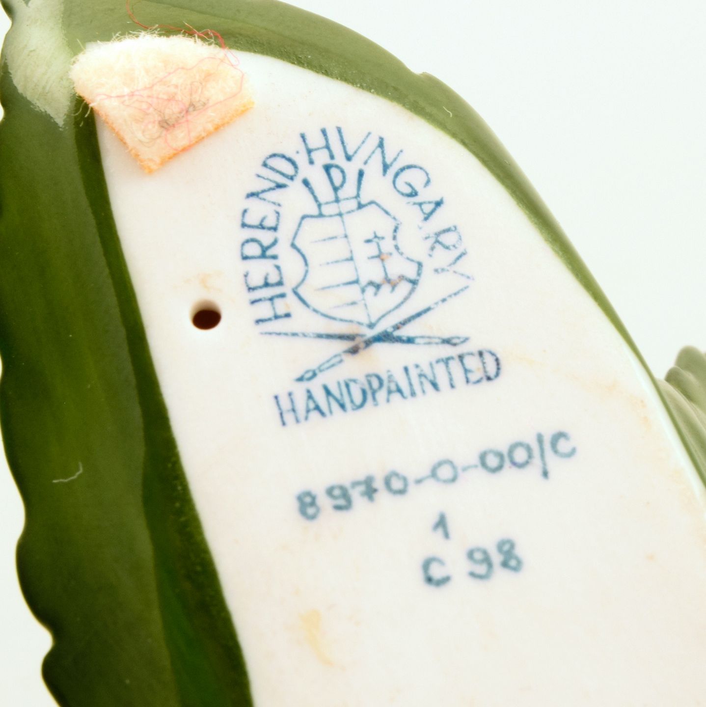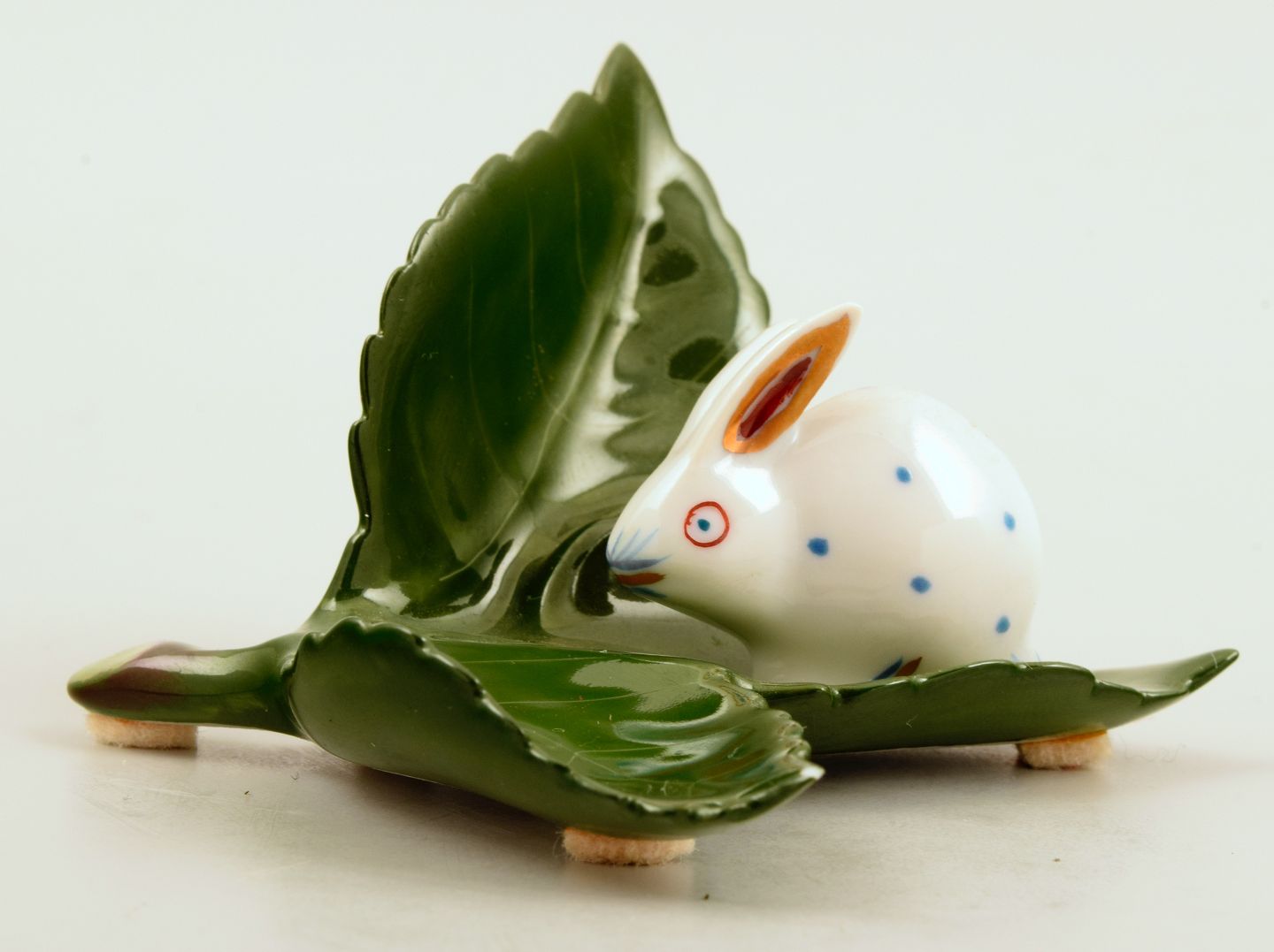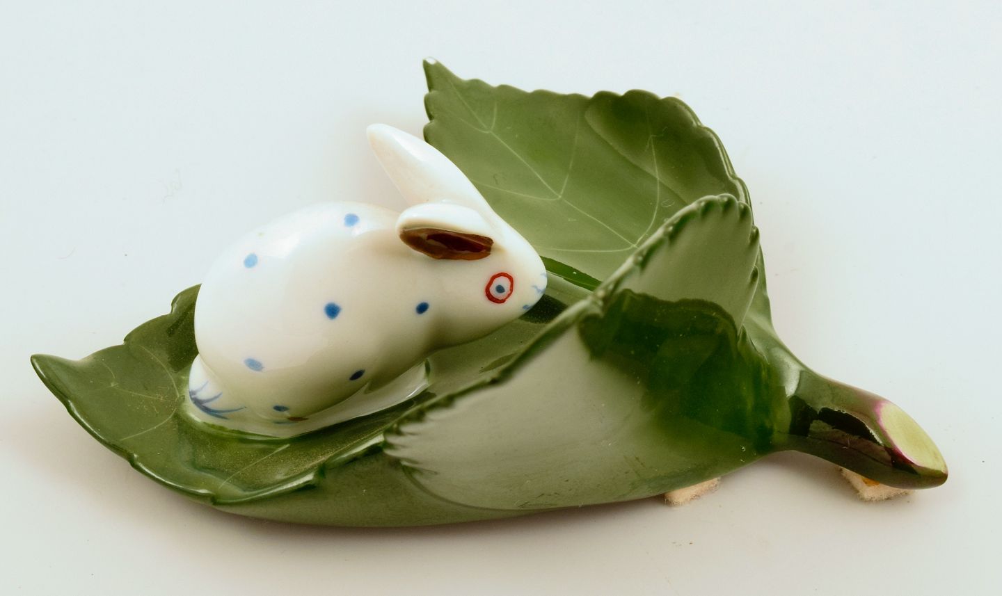 Herend, baby rabbit on leaf in porcelain. 1980s. Measurements: L 7.5 x W 8.0 cm. In excellent condition. Marked.