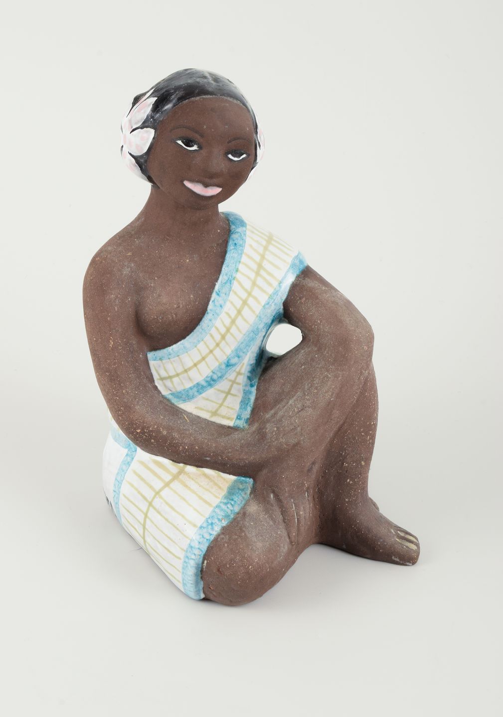 Mari Simmulson figur. Sjælden keramikfigur af halvnøgen Tahiti-kvinde. Upsala-Ekeby. ca. 1960 Måler: H 19 cm. x D 9,5 cm. I flot stand. Stemplet.