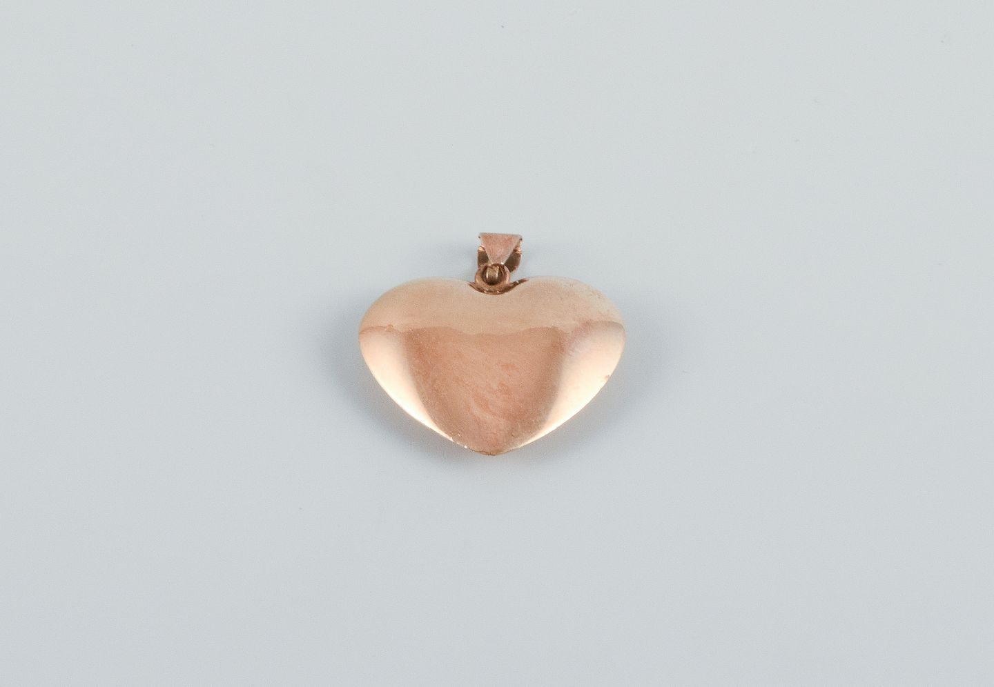 Skandinavisk guldsmed, vedhæng i form a hjerte. Stemplet med guldsmedens initialer. Målt til 14 karat. Hjertet måler 18 mm. x 23 mm.