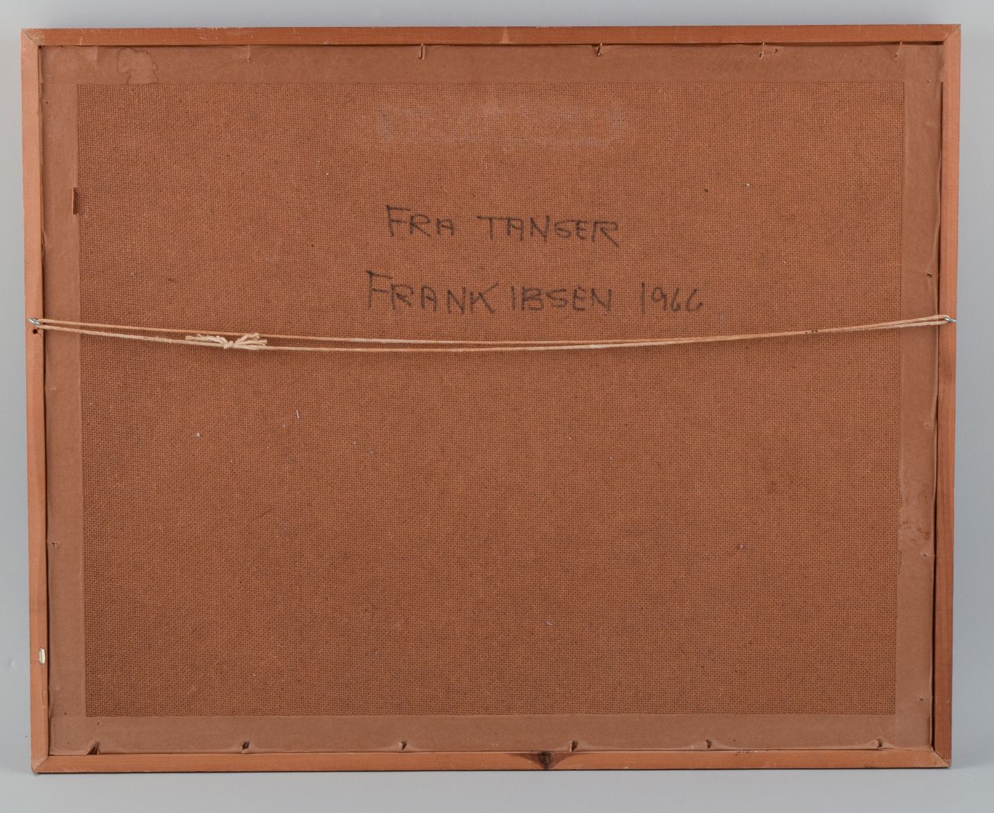 Frank Ibsen, dansk kunstner. Bymotiv fra Tanger, Marokko, olie på plade. Dateret 1966. I perfekt stand. Lysmål: 54 x 43 cm / Totalmål 58 x 46 cm.