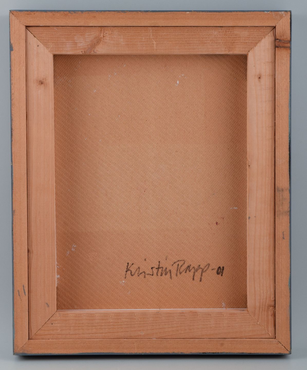 Kristin Rapp, svensk kunstner, olie på plade. Komposition med geometriske felter.
