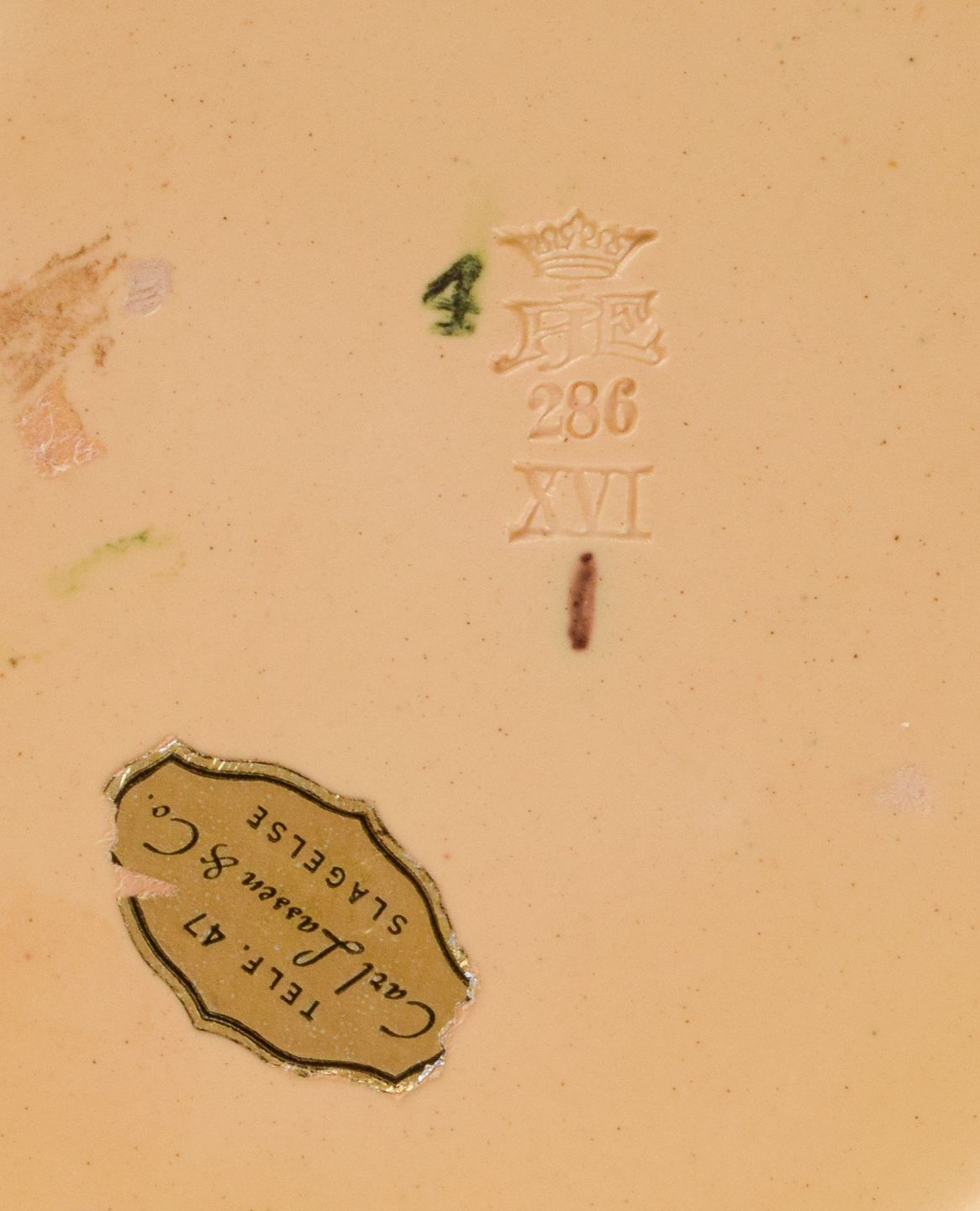 Ipsens enke, skål i glaseret keramik med håndmalet høvding.