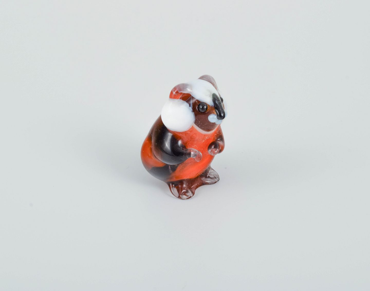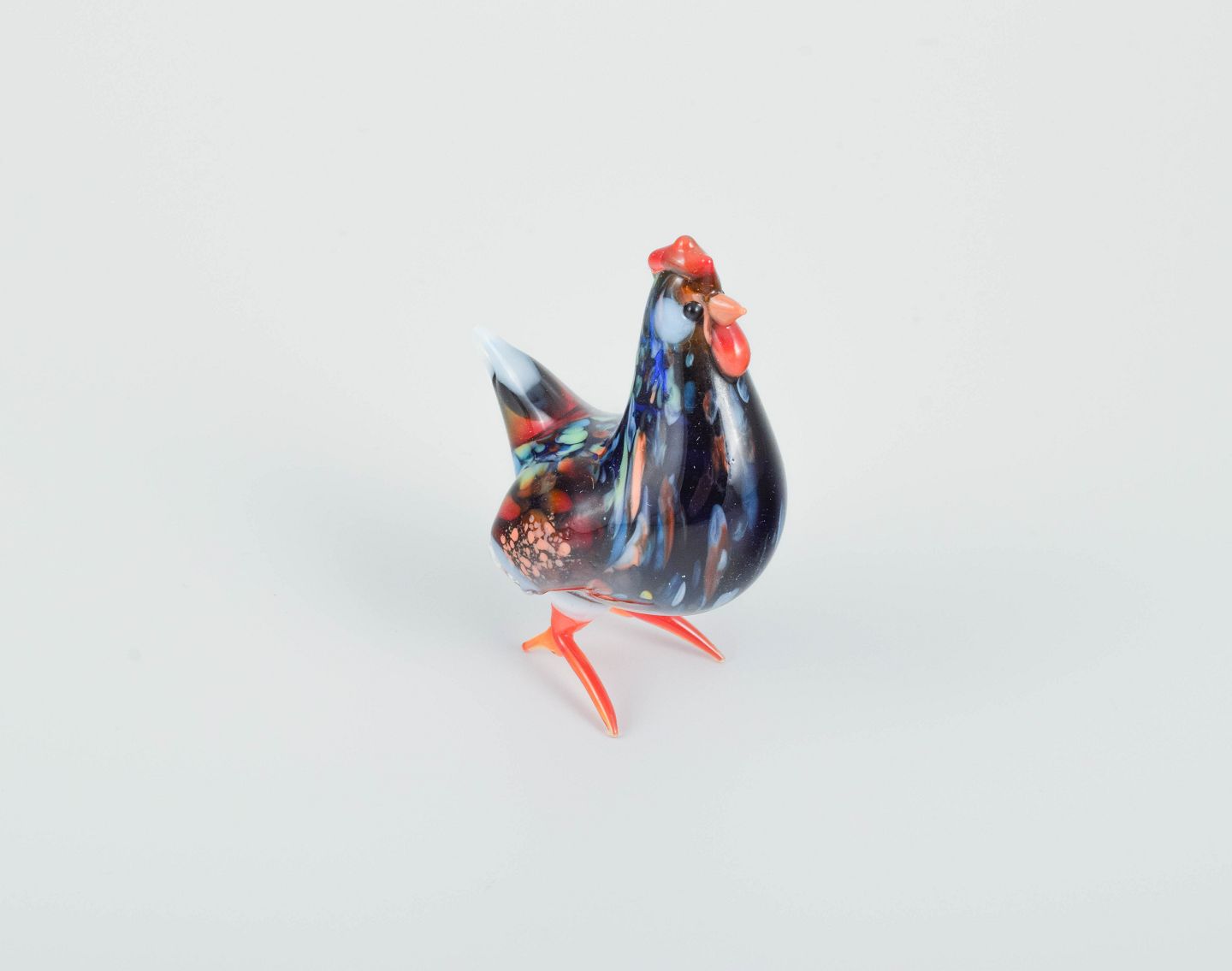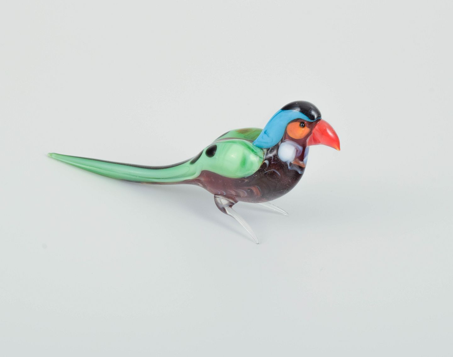 Murano, Italien. En samling på seks miniature glasfigurer af dyr (and, papegøje, høne etc.) i farvet kunstglas.