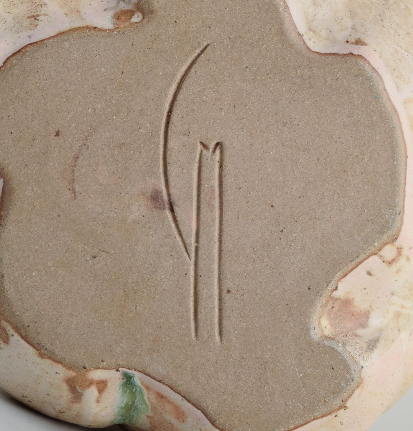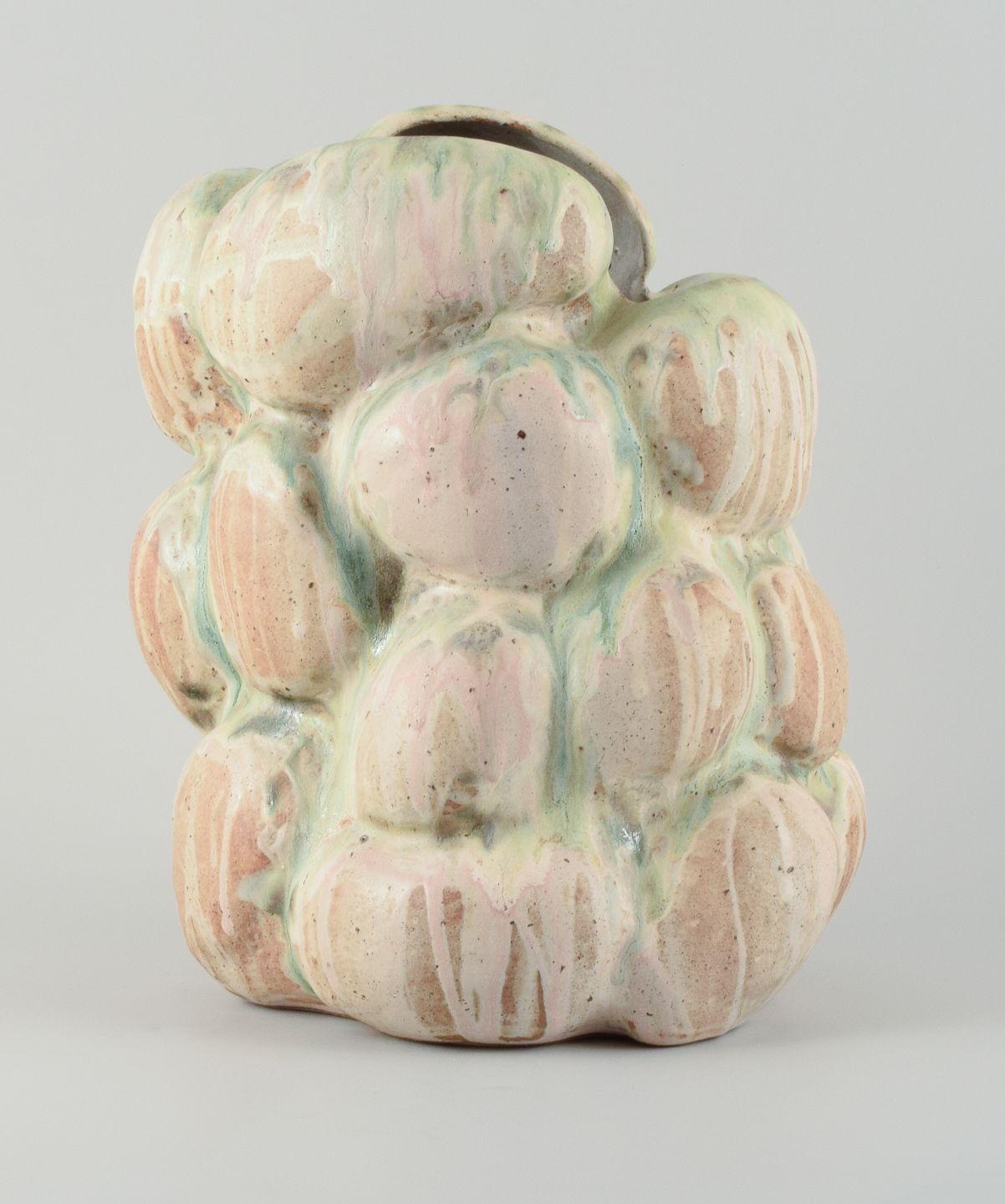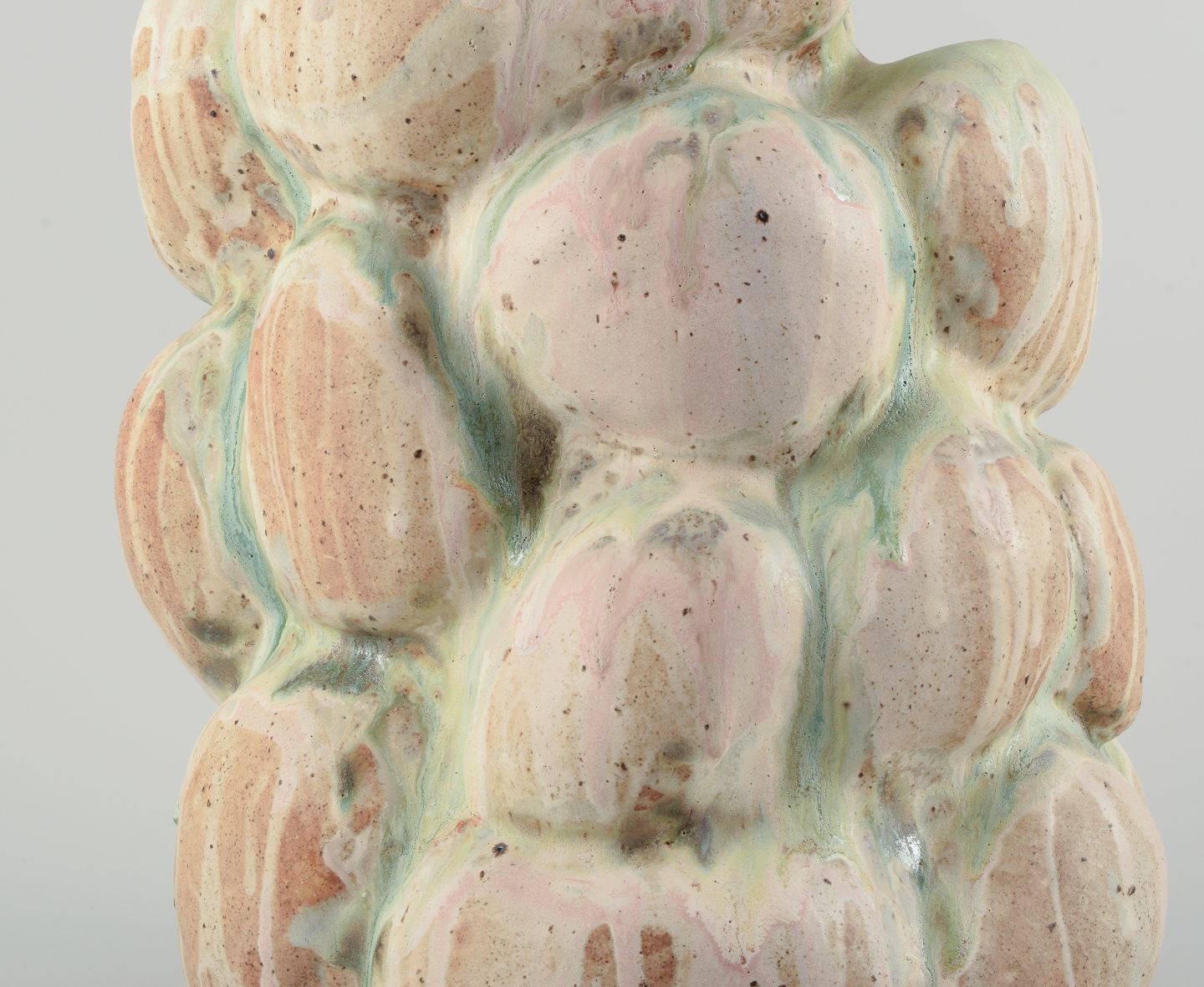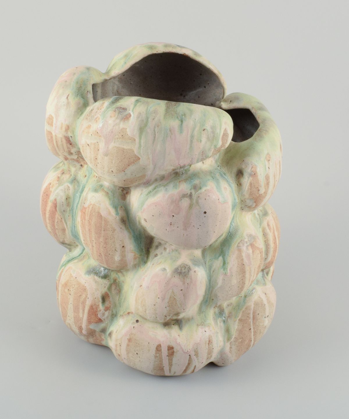 Monumental organically shaped sculpture. This piece is covered in multicolored pastel glaze, the clay showing between glaze runs.