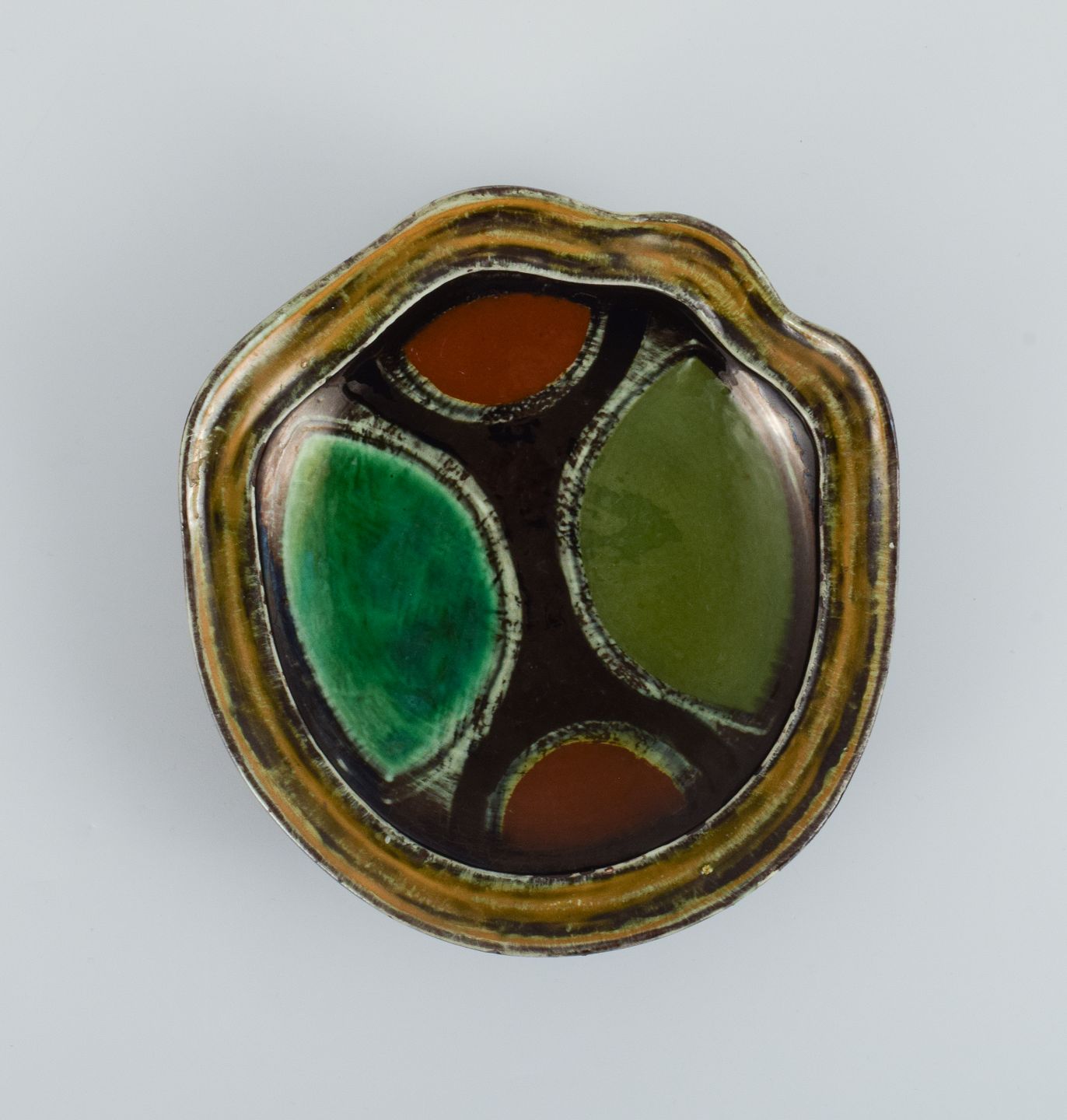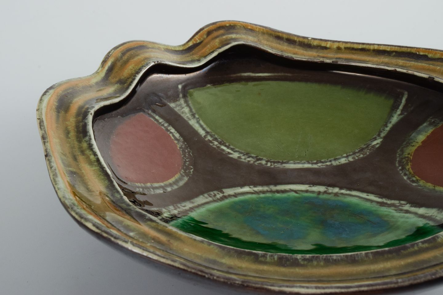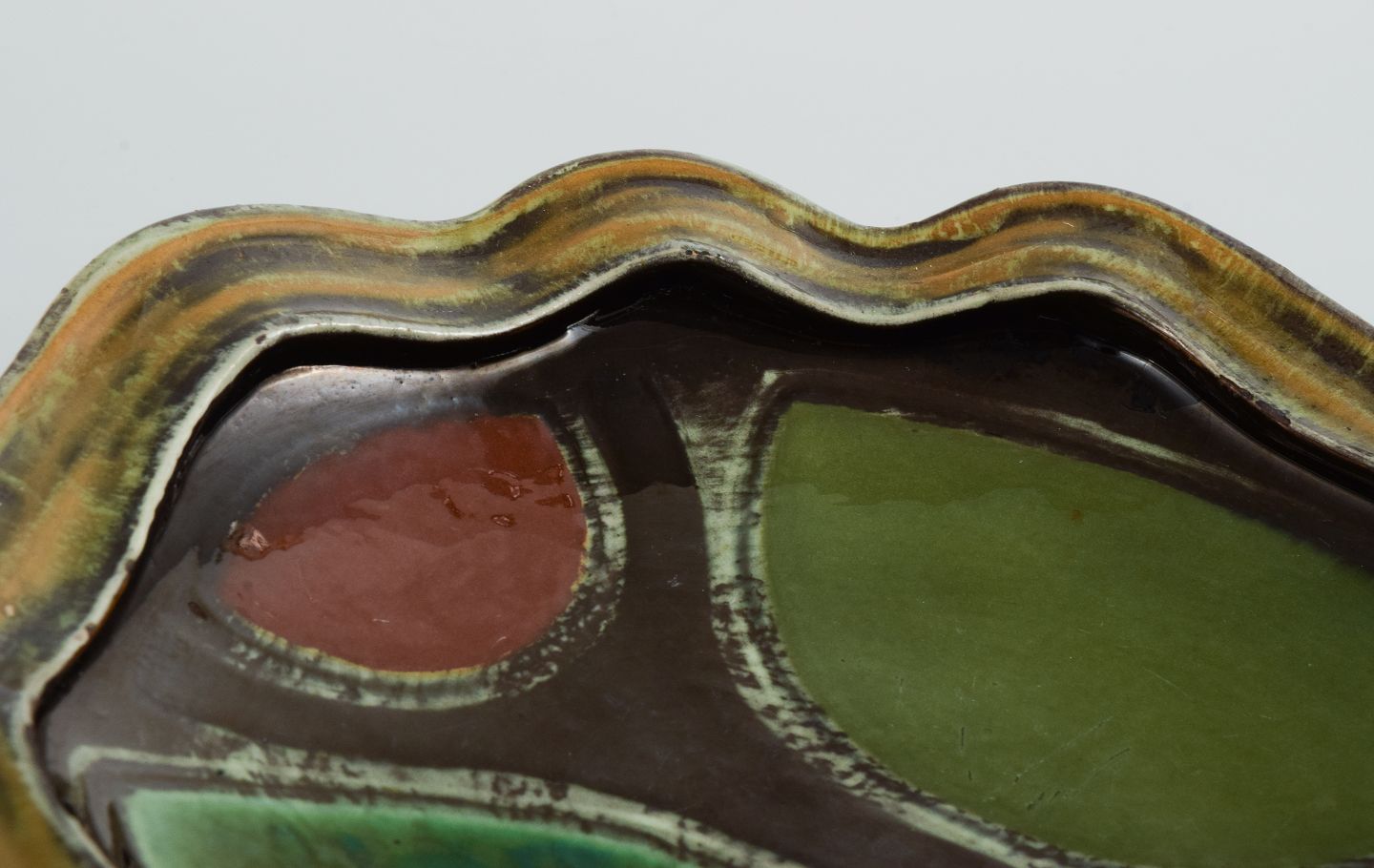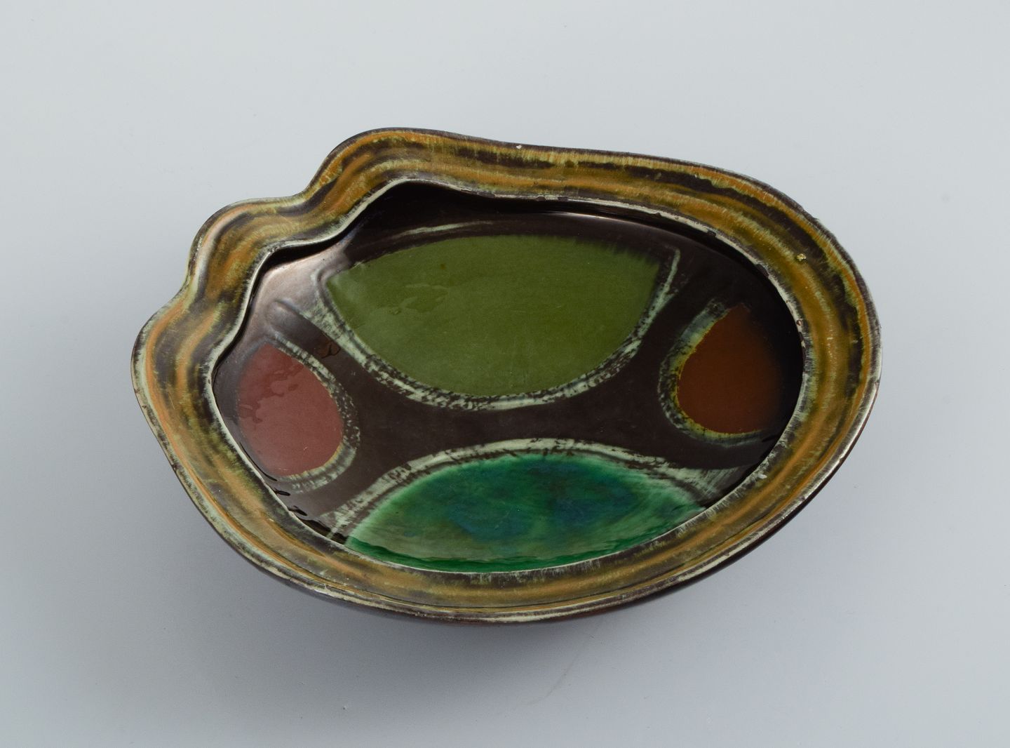 Gete Petersen for Kähler, keramikskål. Håndmalet, abstrakt motiv. 1960'erne. I perfekt stand. Signeret. Måler: D 22 x H 5,0 cm.