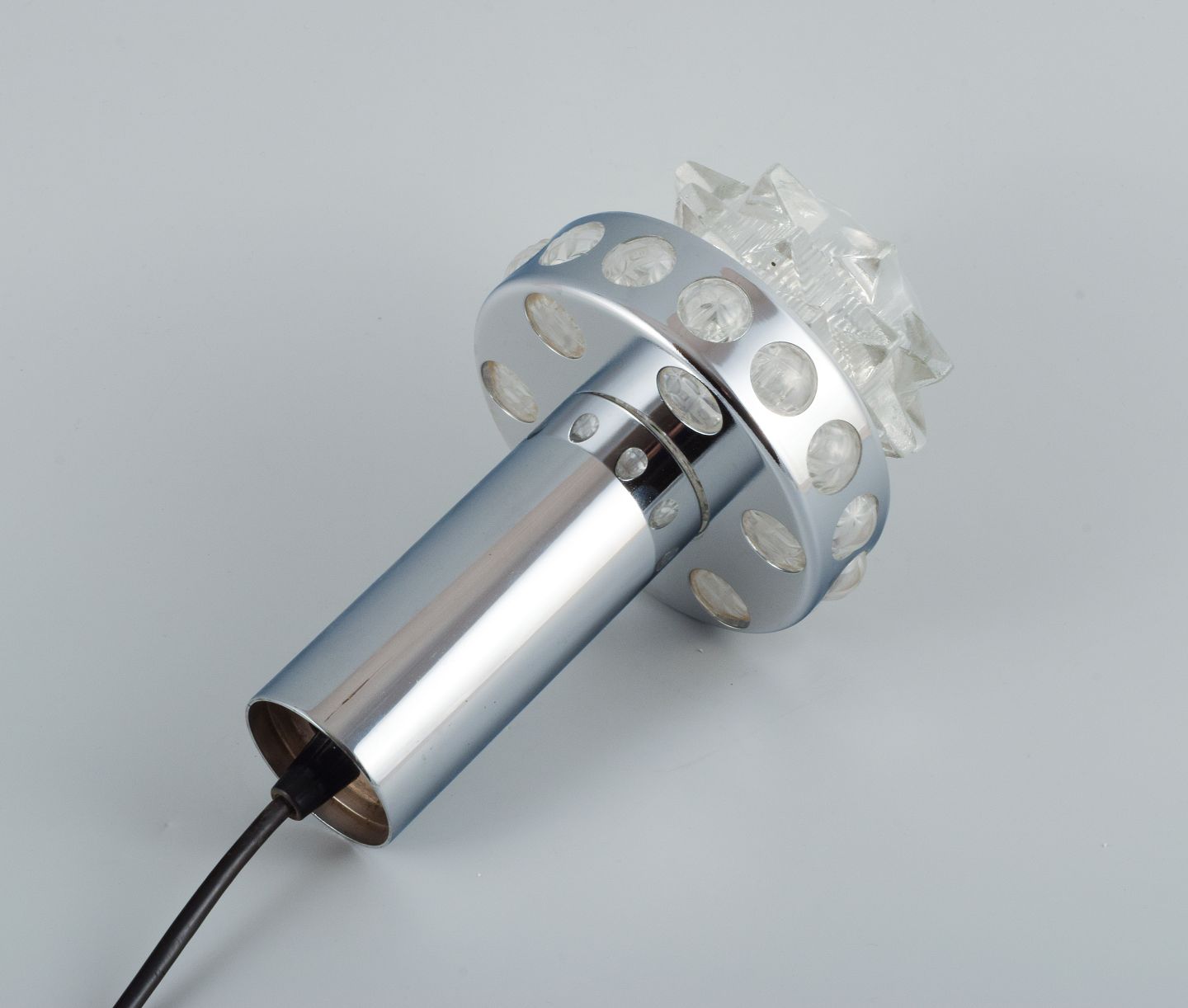 RAAK, Holland. Designerlampe i krom, plast og klart glas. Ca. 1970’erne. I perfekt stand. Måler: H 25,0 x D 15,0 cm.
