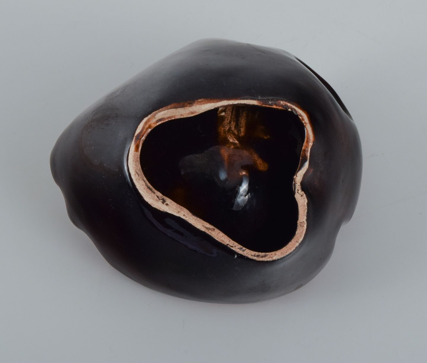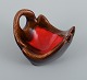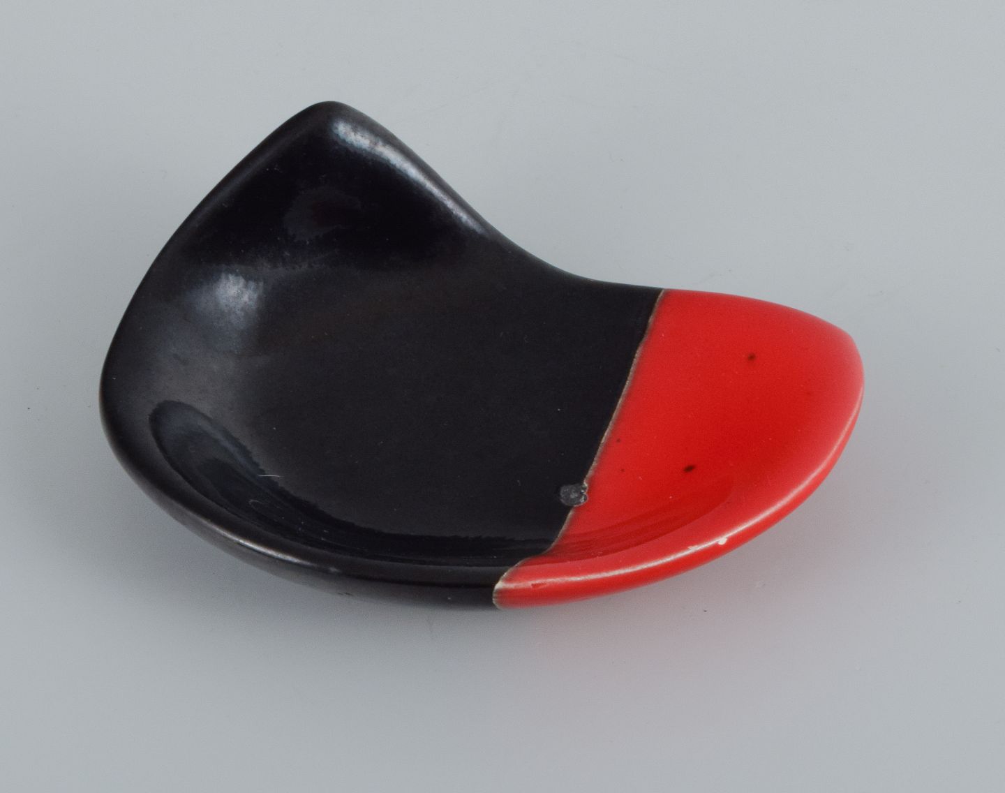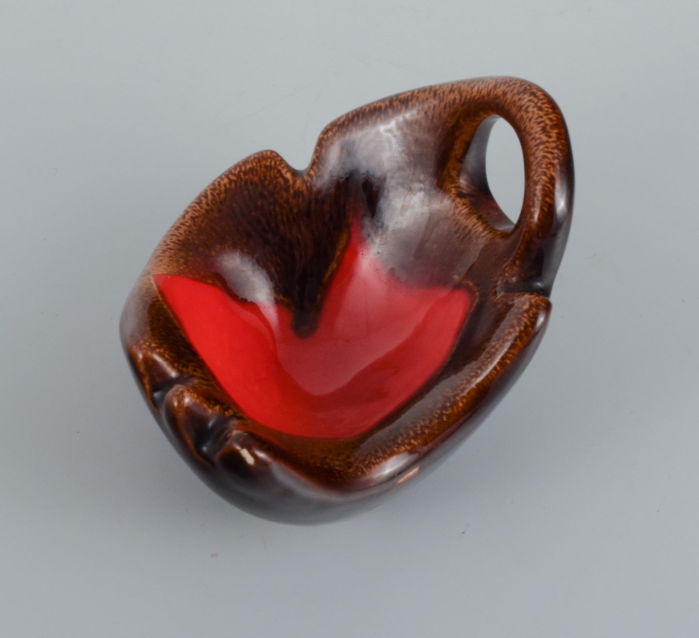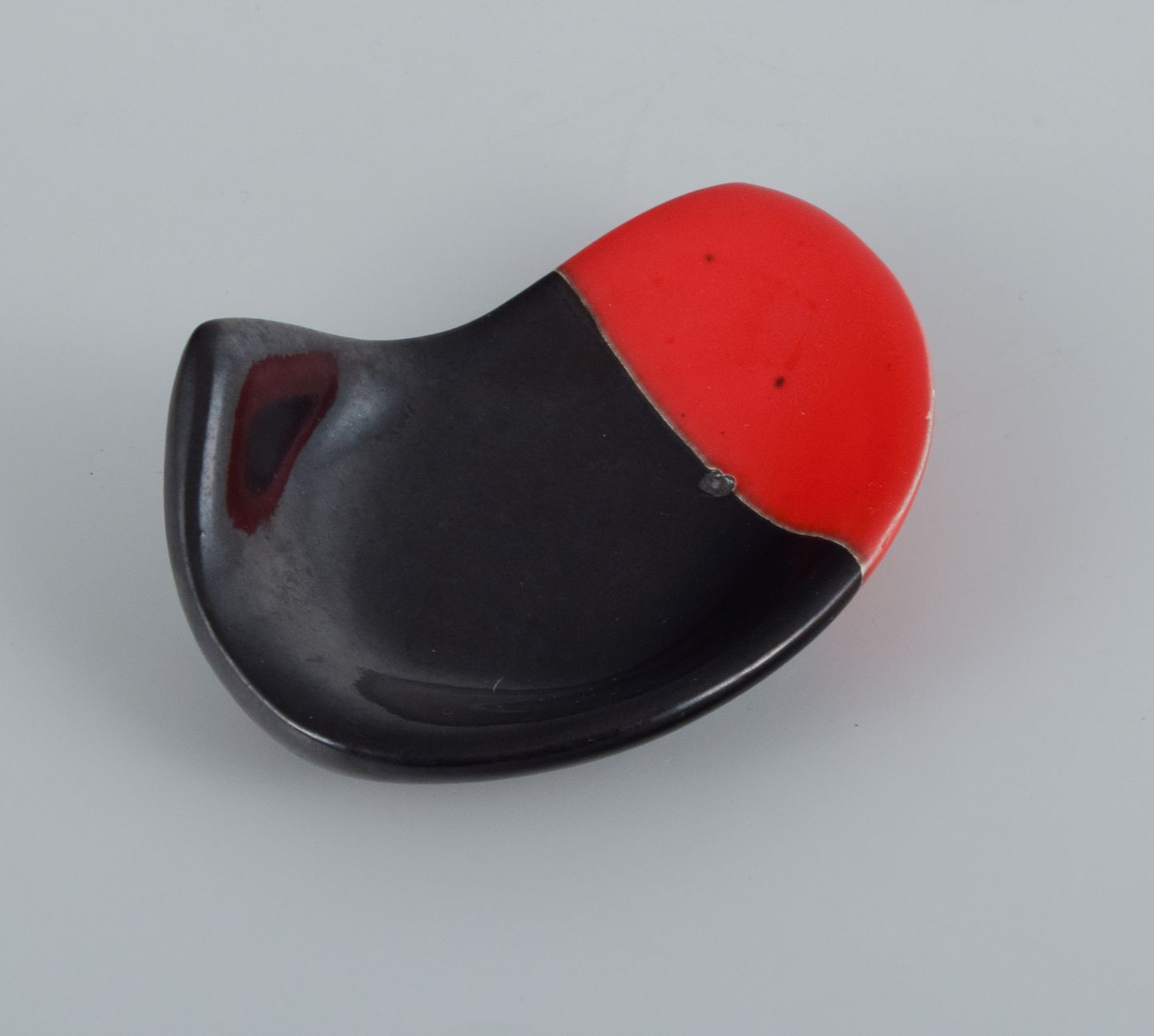 Vallauris, Frankrig, to keramikskåle med glasurer i rød/sort og og rød/brun. 1960/70’erne. Stemplet. I flot stand. Rød/brun måler: L 11,0 x B 9.5 x H 8.0 cm.